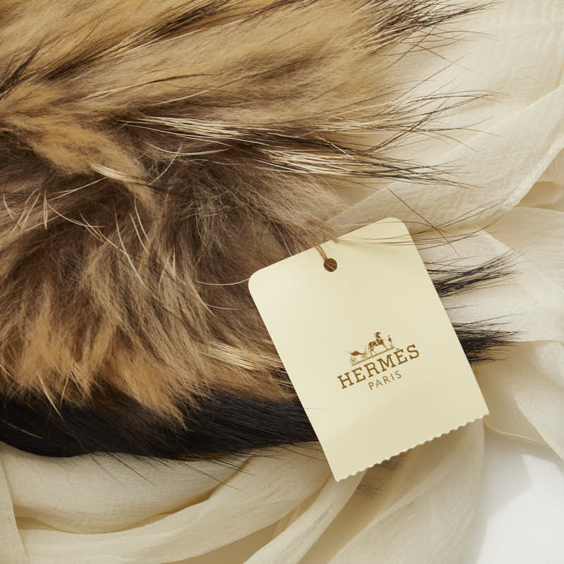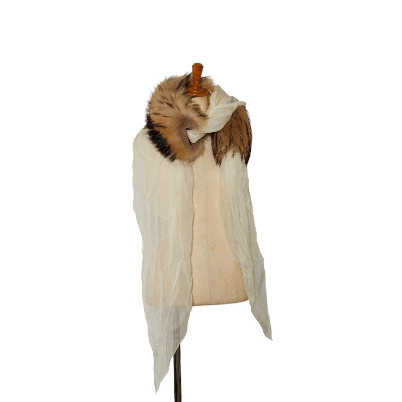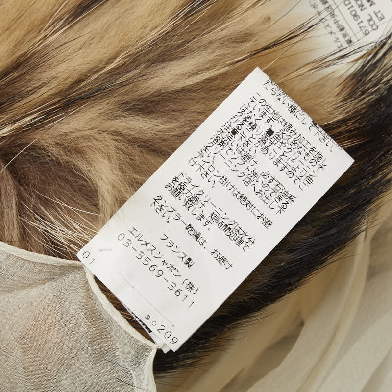 エルメス ファー マフラー アイボリー ブラウン ラクーン シルク レディース HERMES 【中古】
