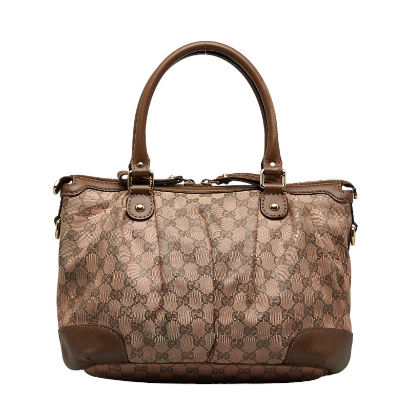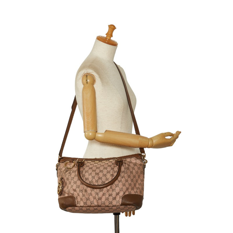 グッチ GGキャンバス スーキー ハンドバッグ ショルダーバッグ 2WAY 247902 ピンク ブラウン キャンバス レザー レディース GUCCI 【中古】