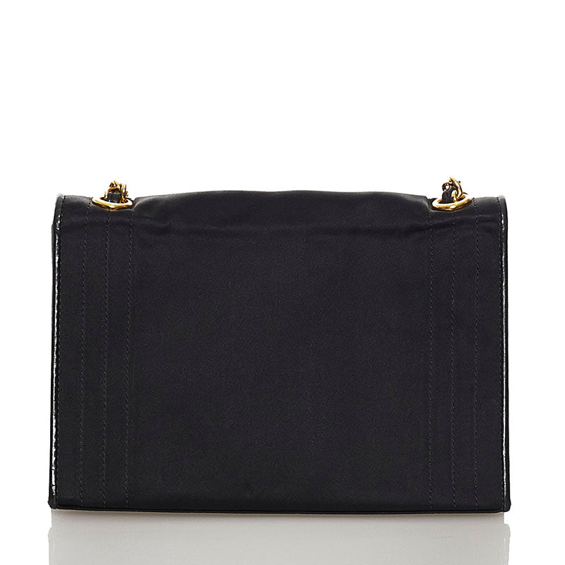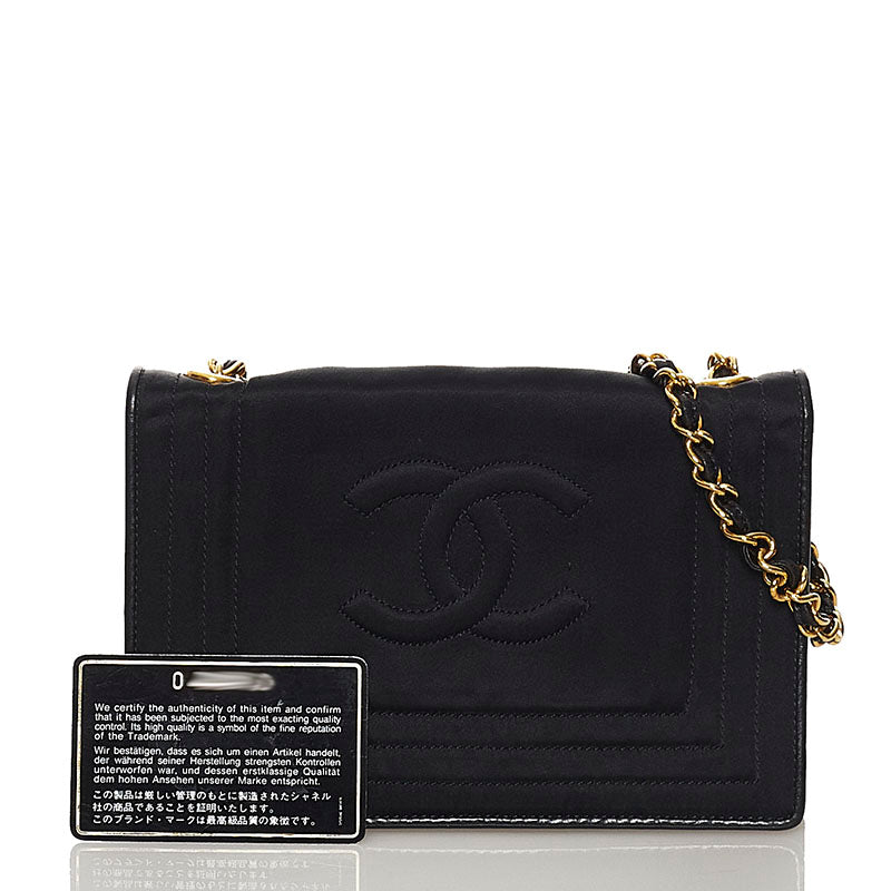 シャネル ココマーク チェーン ショルダーバッグ ブラック サテン レディース CHANEL 【中古】