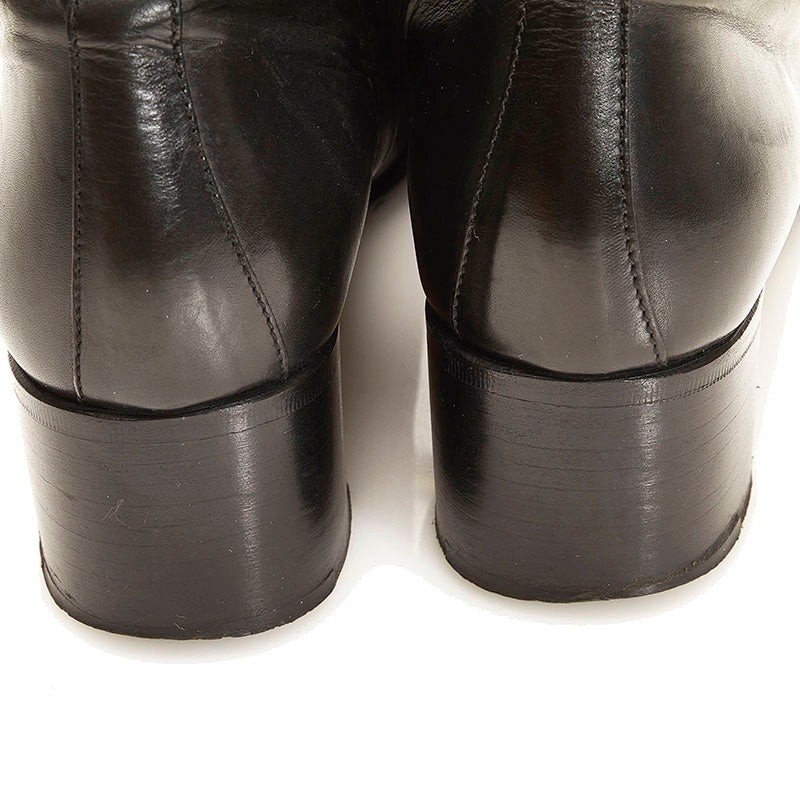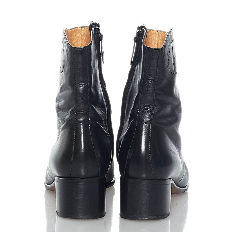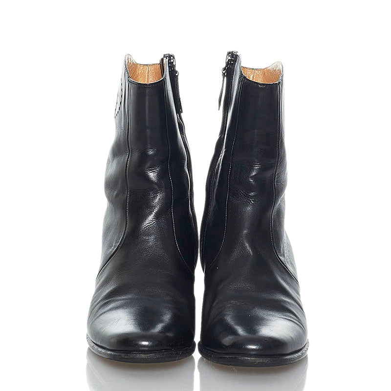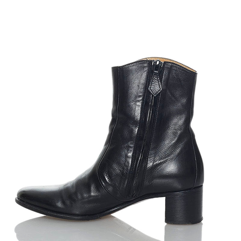 エルメス パンチング ショート ブーツ ブラック レザー レディース HERMES 【中古】
