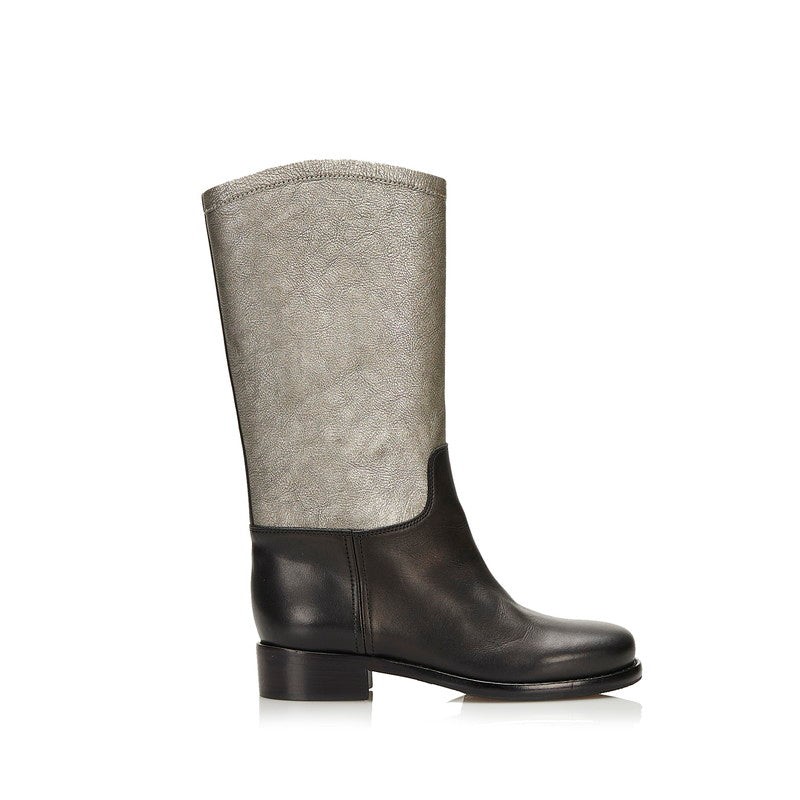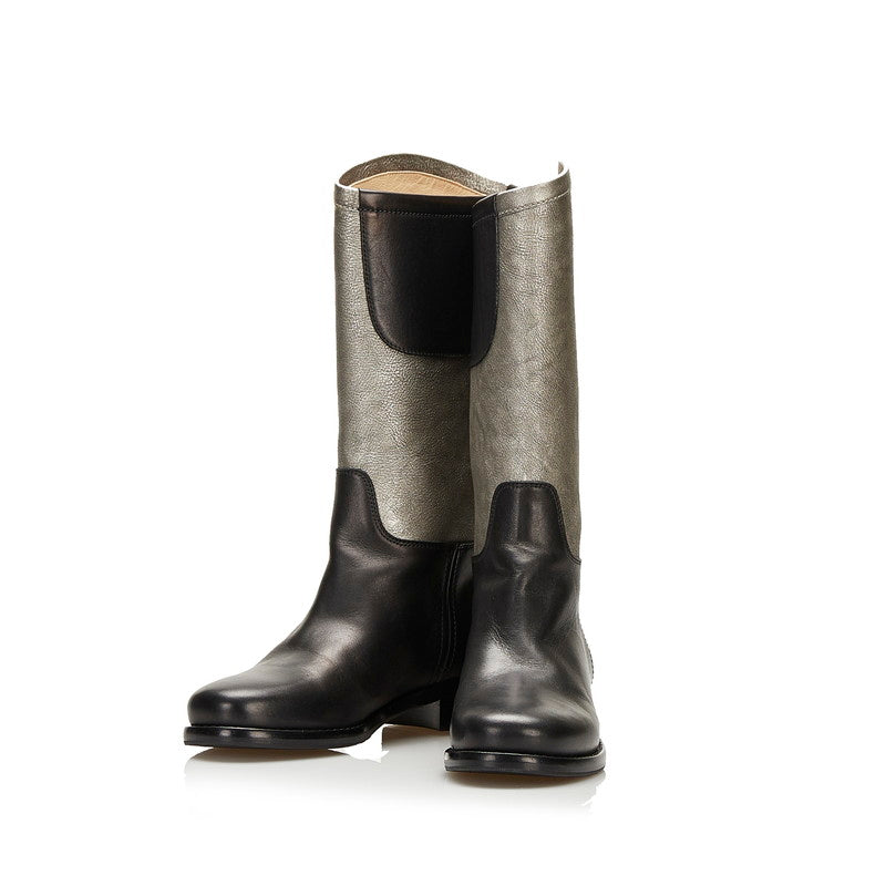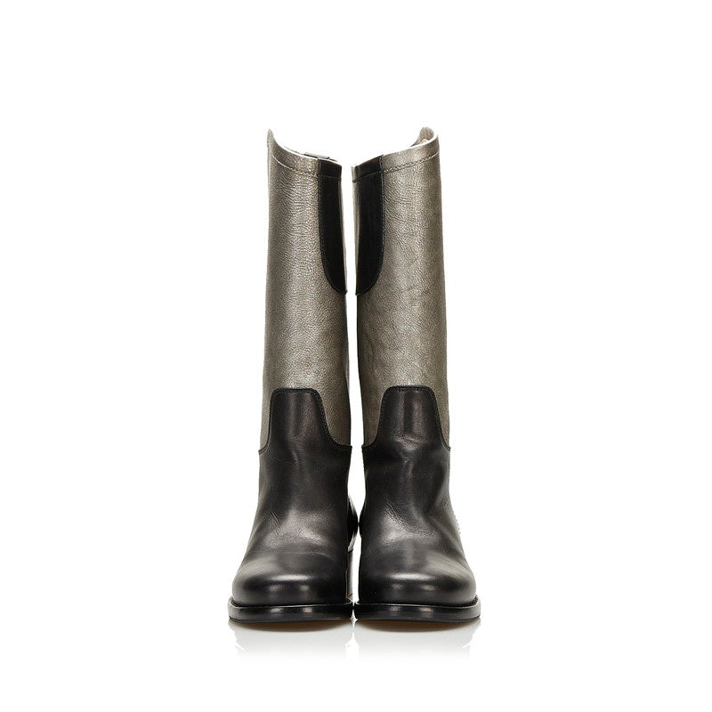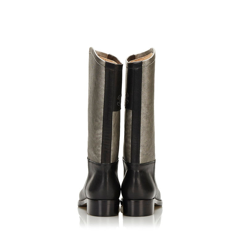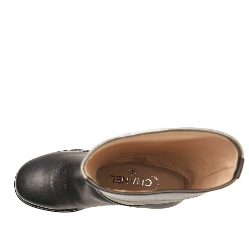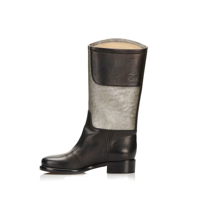 シャネル ココマーク ロングブーツ シルバー ブラック レザー レディース CHANEL 【中古】