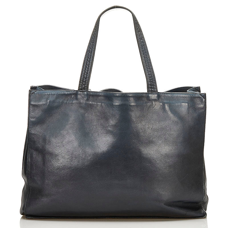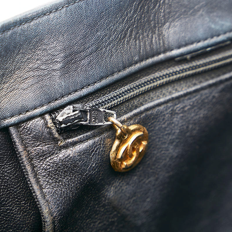 シャネル ココマーク トートバッグ ネイビー レザー レディース CHANEL 【中古】