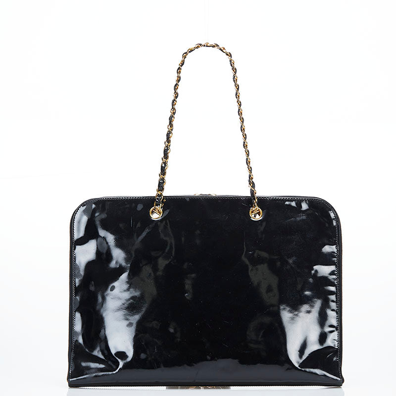 シャネル チェーン トートバッグ ショルダーバッグ ブラック エナメル レディース CHANEL 【中古】
