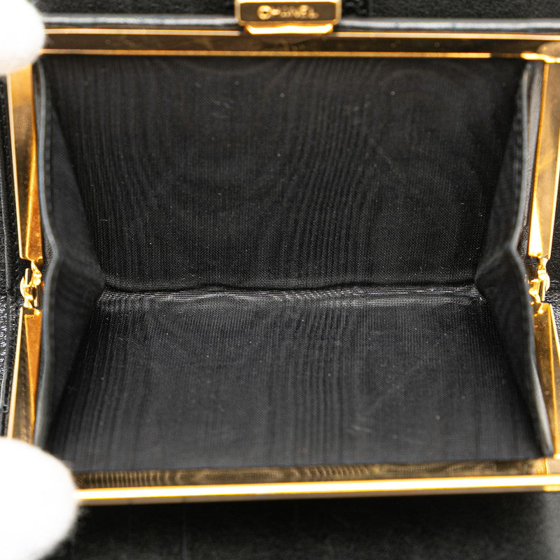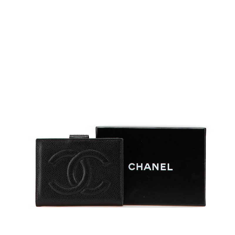 シャネル ココマーク がま口 二つ折り財布 ブラック キャビアスキン レディース CHANEL 【中古】