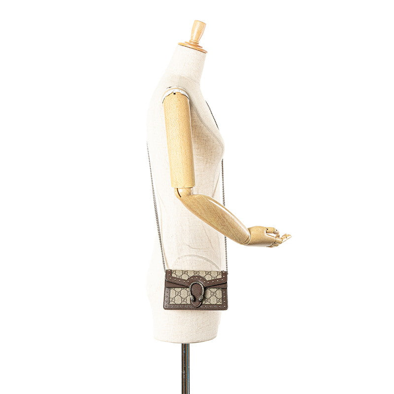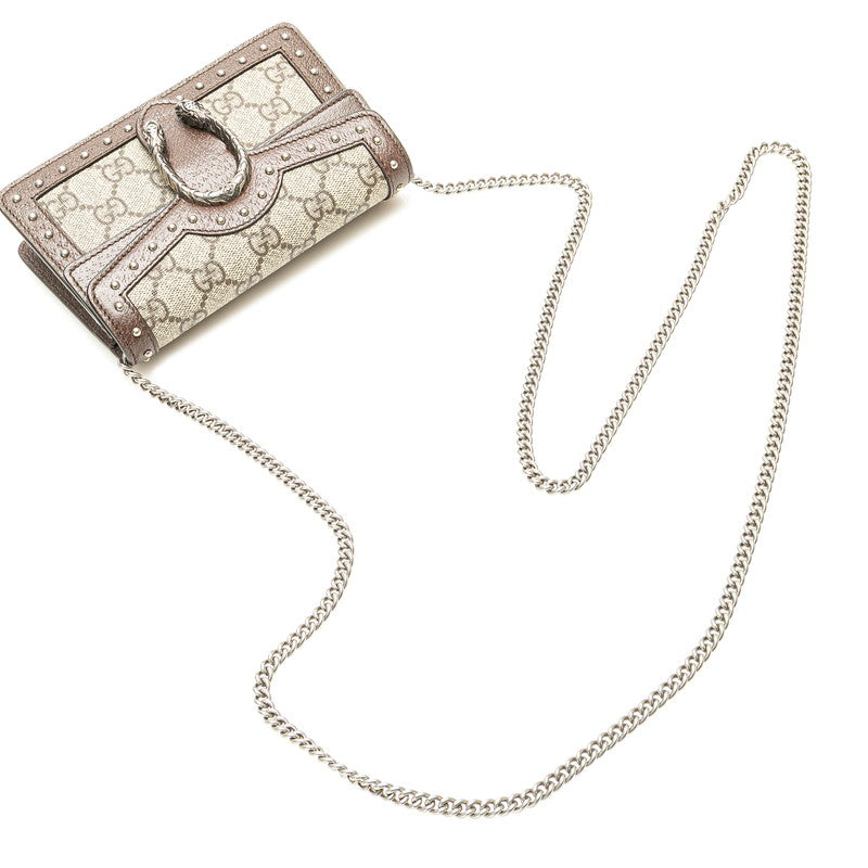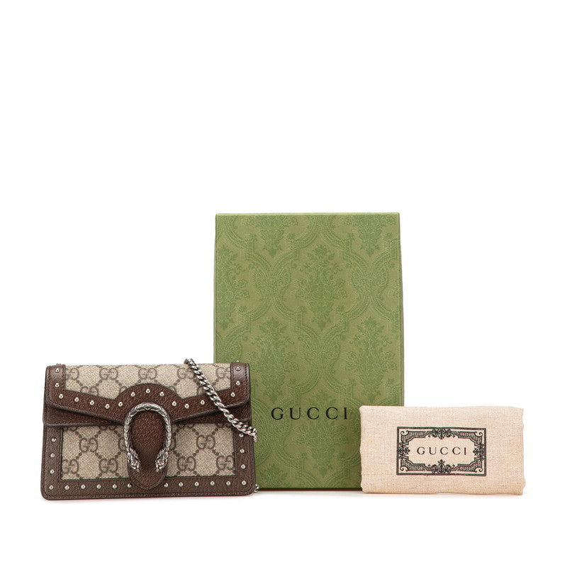 グッチ GGスプリーム ディオニュソス スーパーミニ スタッズ 斜め掛け チェーン ショルダーバッグ 476432 ベージュ ブラウン PVC レザー レディース GUCCI 【中古】