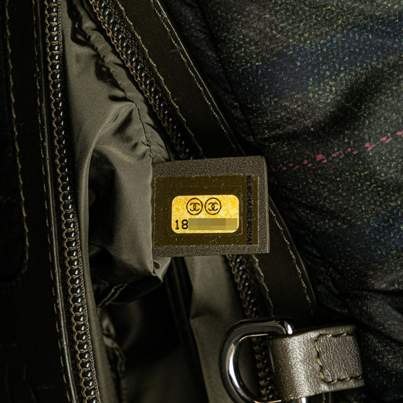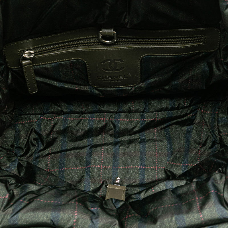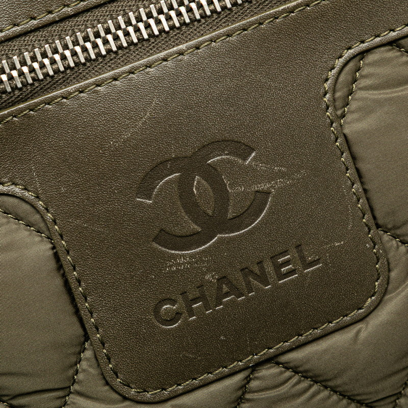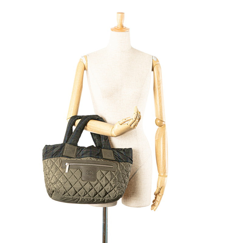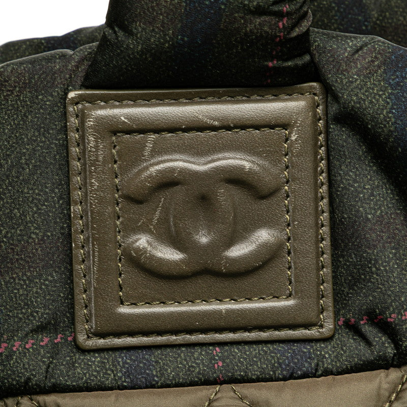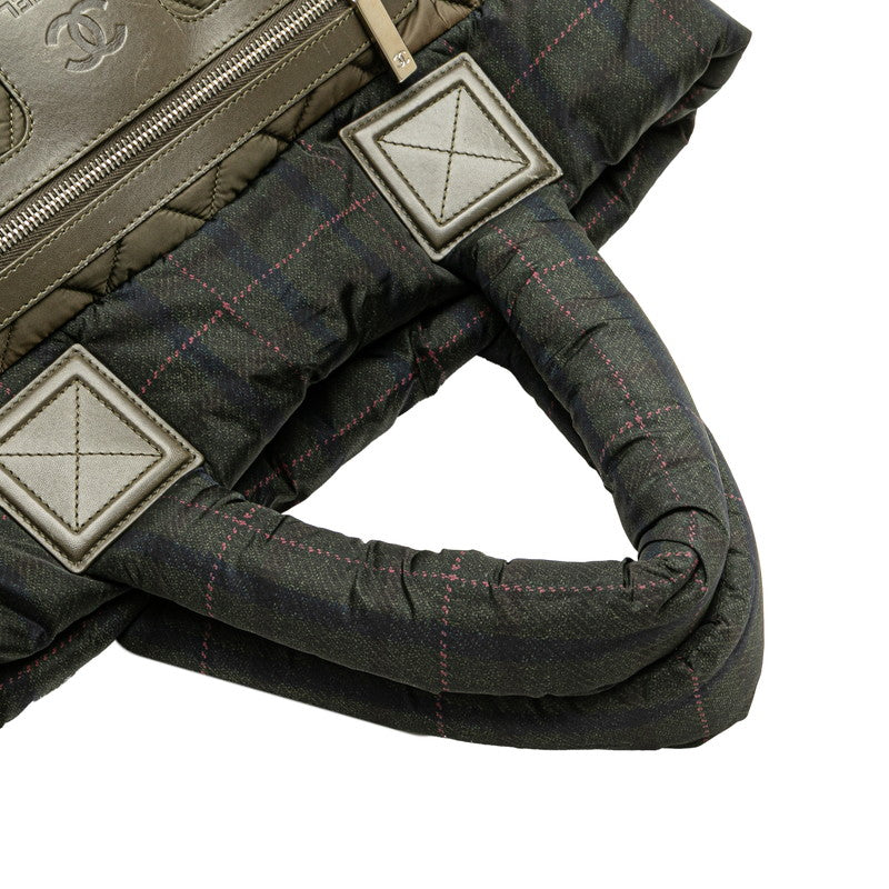 シャネル コココクーン チェック ハンドバッグ トートバッグ カーキグリーン ナイロン レザー レディース CHANEL 【中古】