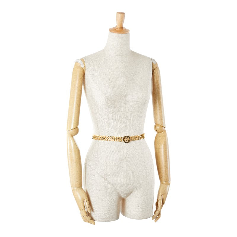 シャネル ココマーク ラウンド サークル ダブル チェーン ベルト ゴールド メッキ レディース CHANEL 【中古】