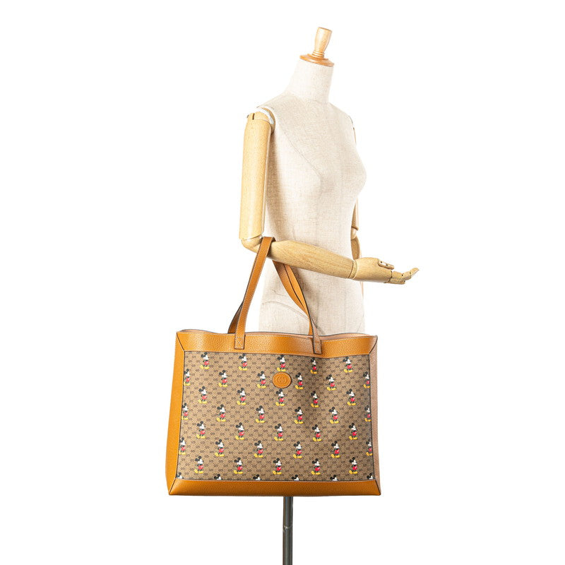 グッチ ×ディズニー GGスプリーム ミディアム ハンドバッグ トートバッグ 547947 ベージュ PVC レザー レディース GUCCI 【中古】