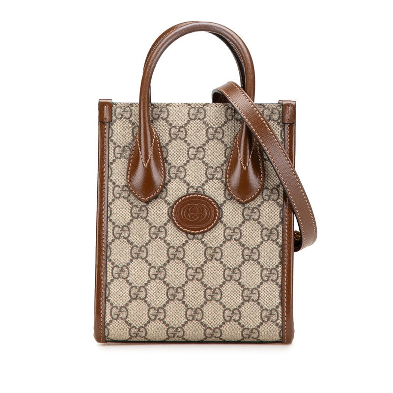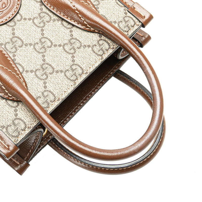 グッチ GGスプリーム インターロッキングG ミニ ハンドバッグ ショルダーバッグ 2WAY 671623 ベージュ ブラウン PVC レザー レディース GUCCI 【中古】