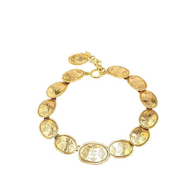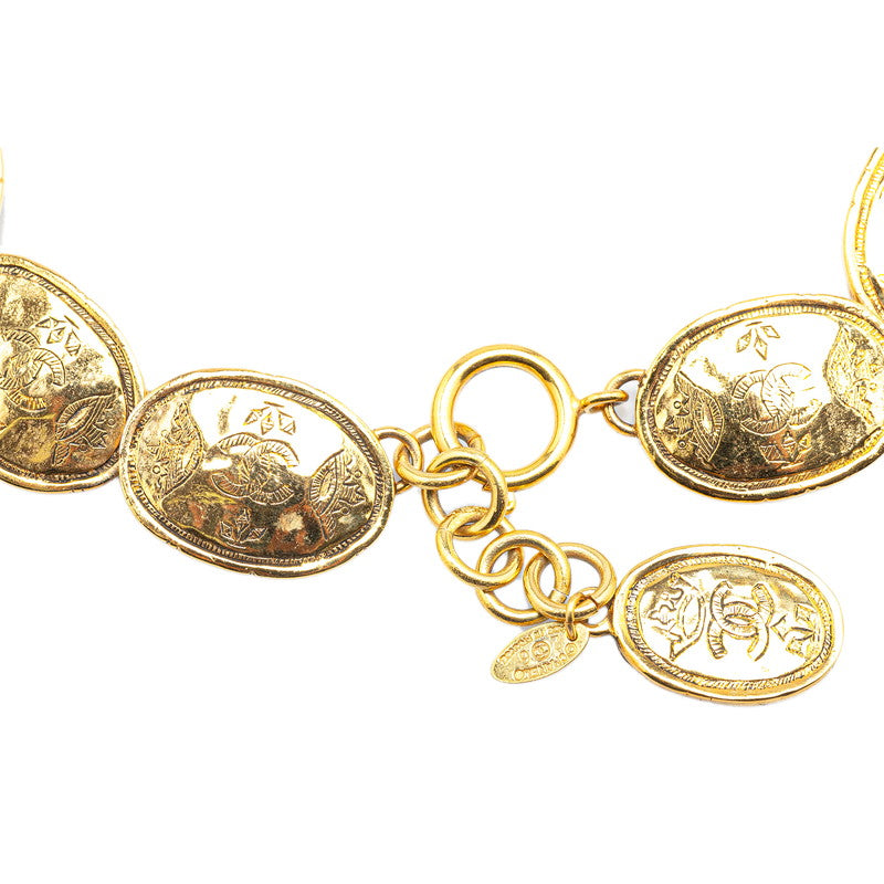 シャネル ココマーク 王冠 クラウン プレート ネックレス ゴールド メッキ レディース CHANEL 【中古】