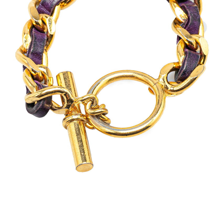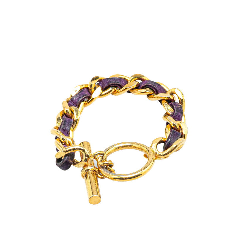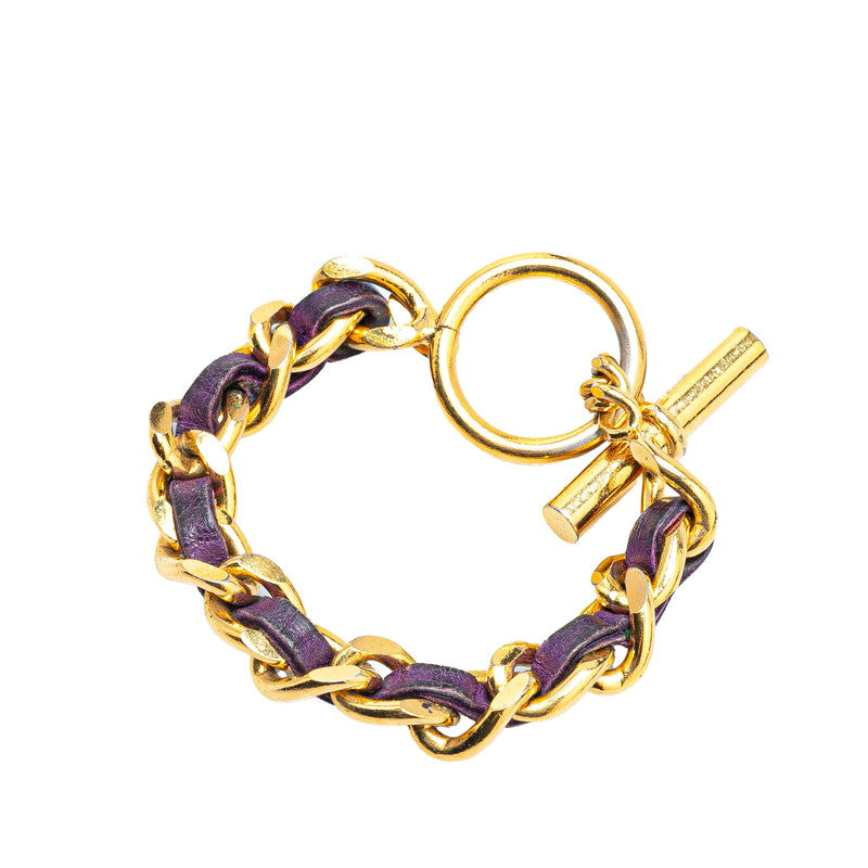 シャネル チェーン Tバー ブレスレット ゴールド パープル メッキ レザー レディース CHANEL 【中古】