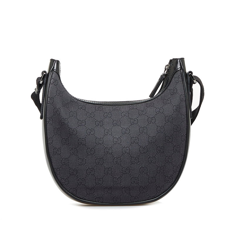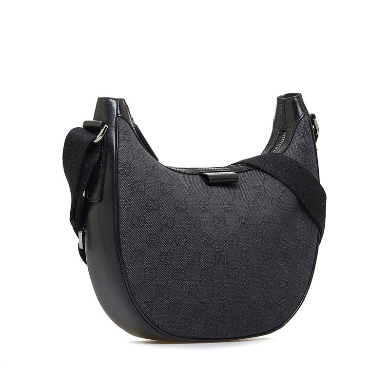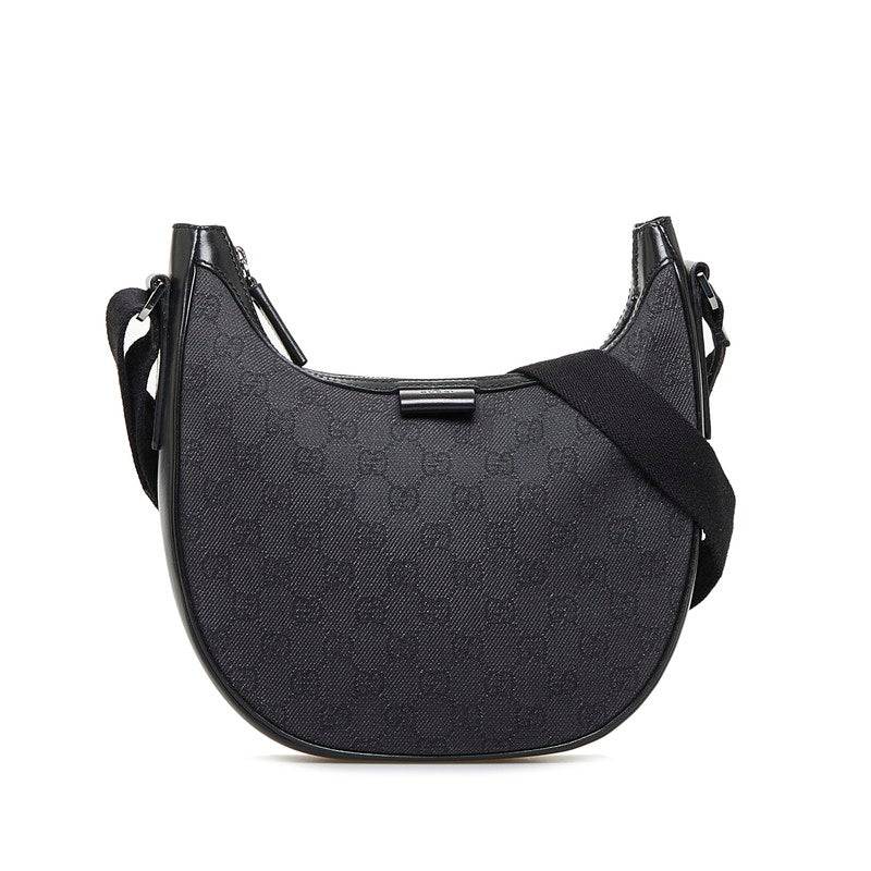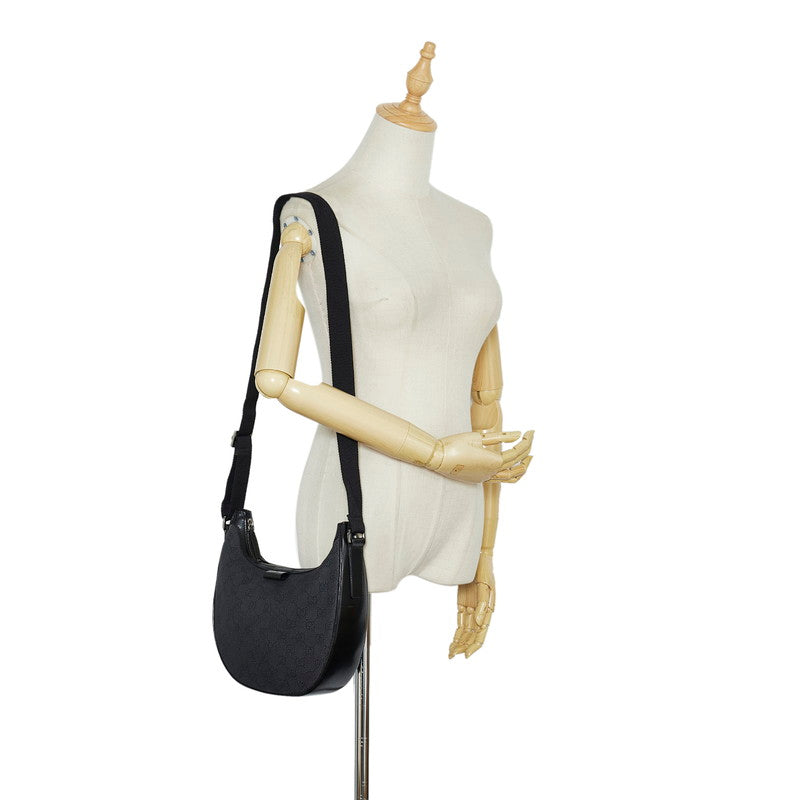 グッチ GGキャンバス 斜め掛け ショルダーバッグ 101682 ブラック キャンバス レザー レディース GUCCI 【中古】