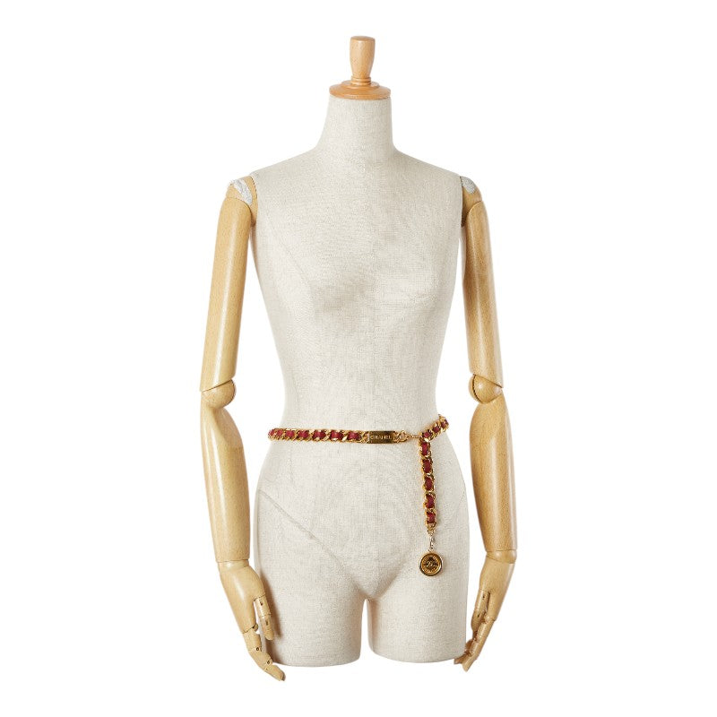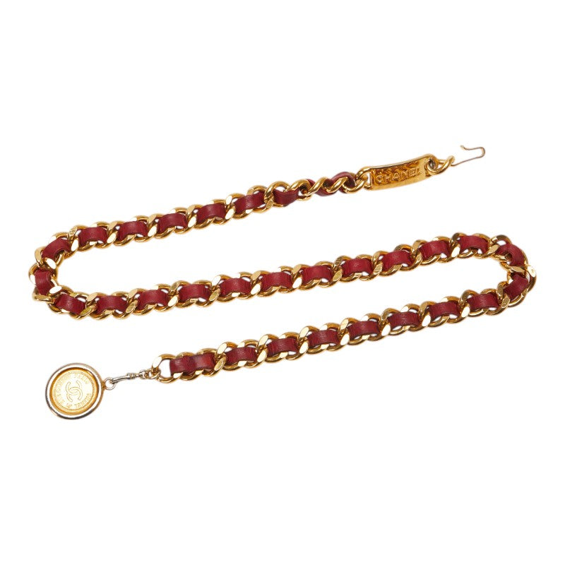 シャネル ココマーク メダリオンプレート チェーン ベルト ゴールド レッド メッキ レザー レディース CHANEL 【中古】