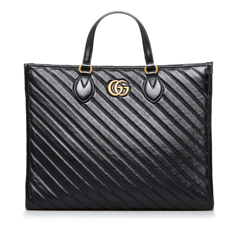 グッチ GGマーモント ハンドバッグ ショルダーバッグ 2WAY 627332 ブラック ゴールド レザー レディース GUCCI 【中古】