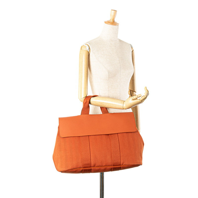 エルメス ヴァルパライソMM ハンドバッグ ポティロン オレンジ トワルシェブロン レザー レディース HERMES 【中古】