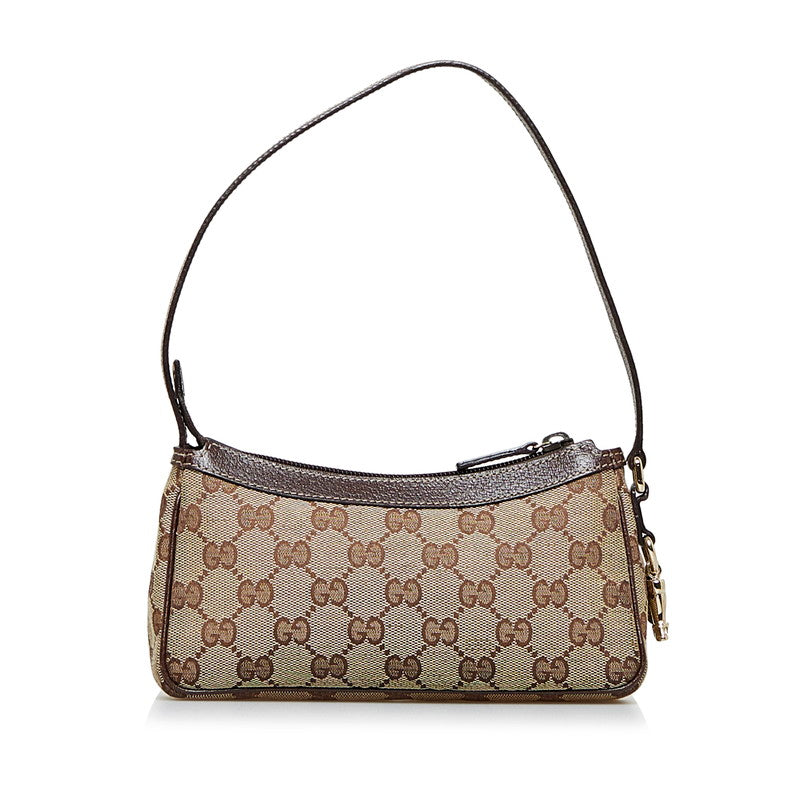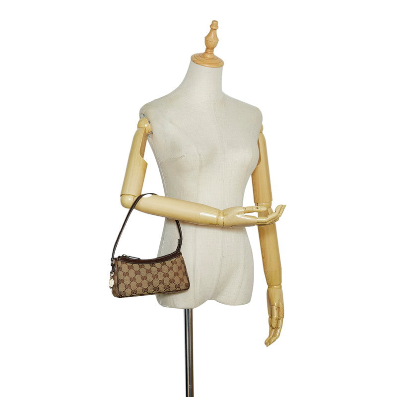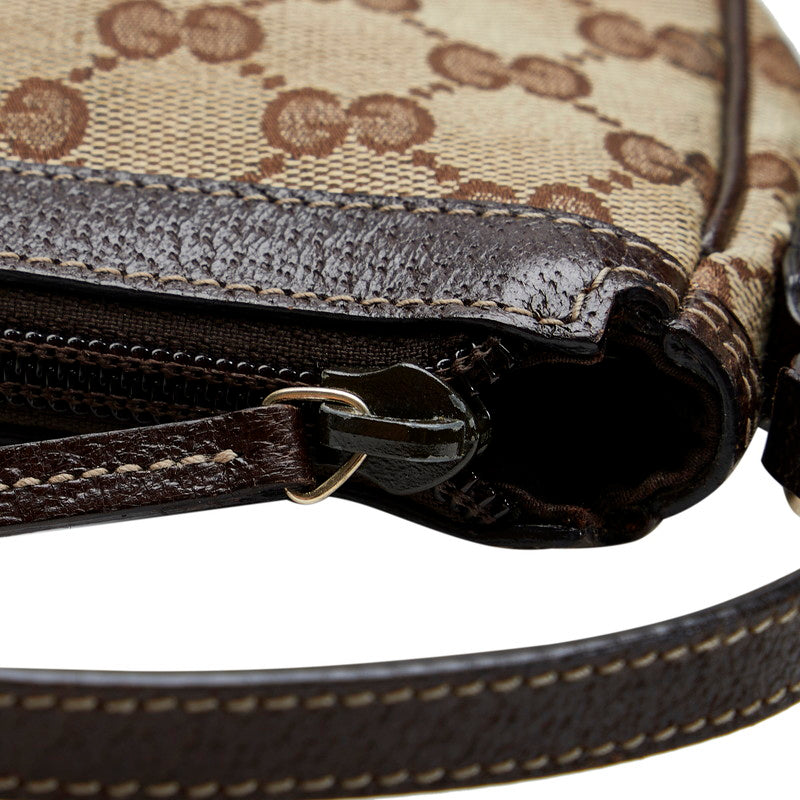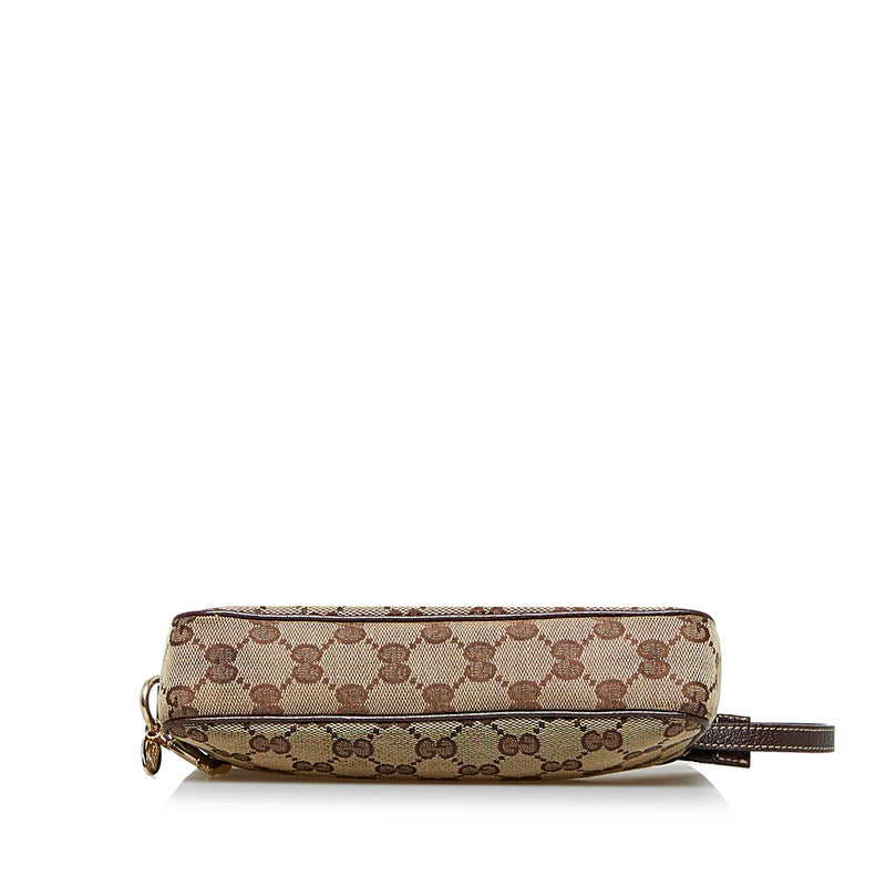 グッチ GGキャンバス ポーチ アクセサリーポーチ 154432 ベージュ ブラウン キャンバス レザー レディース GUCCI 【中古】