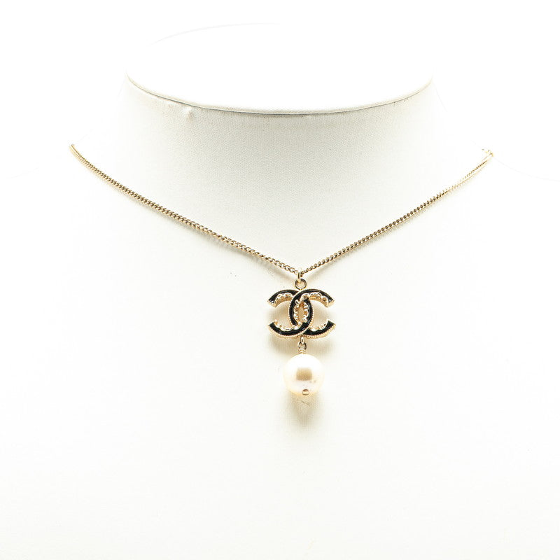 シャネル ココマーク ネックレス ゴールド ブラック メッキ フェイクパール レディース CHANEL 【中古】