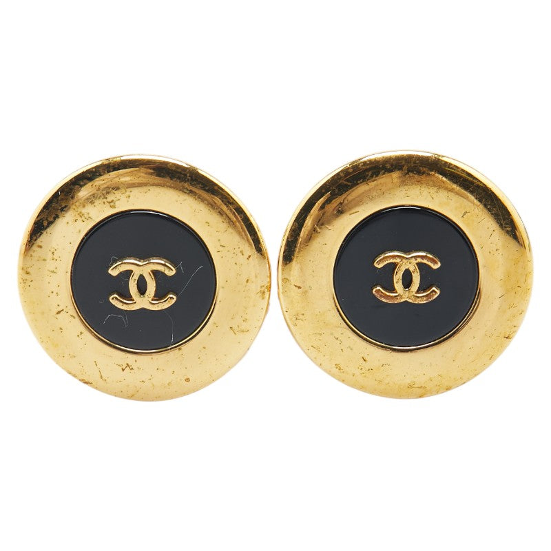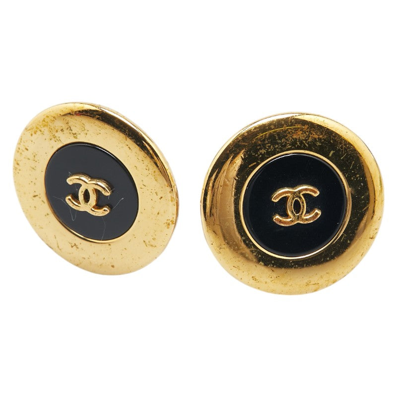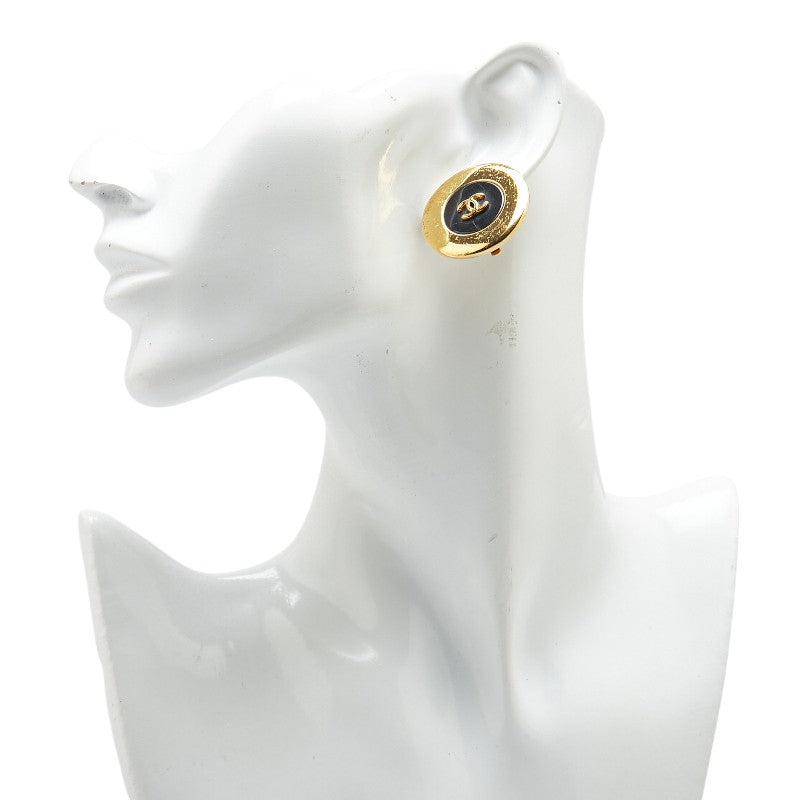 シャネル ココマーク ラウンド イヤリング ゴールド ブラック メッキ プラスチック レディース CHANEL 【中古】