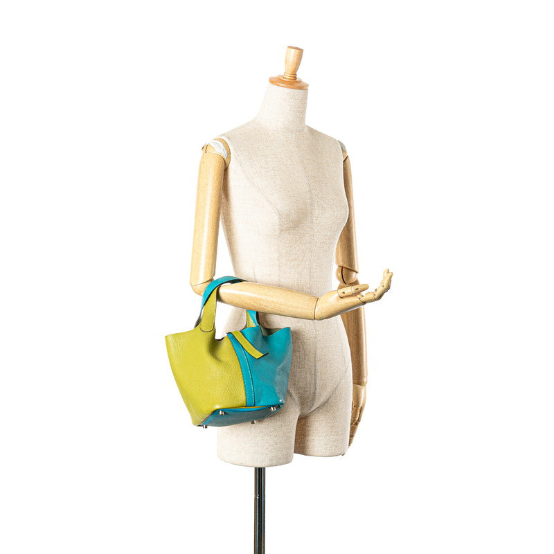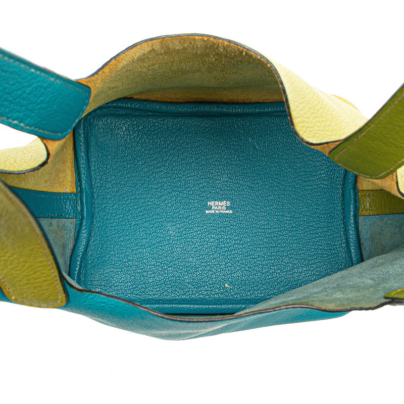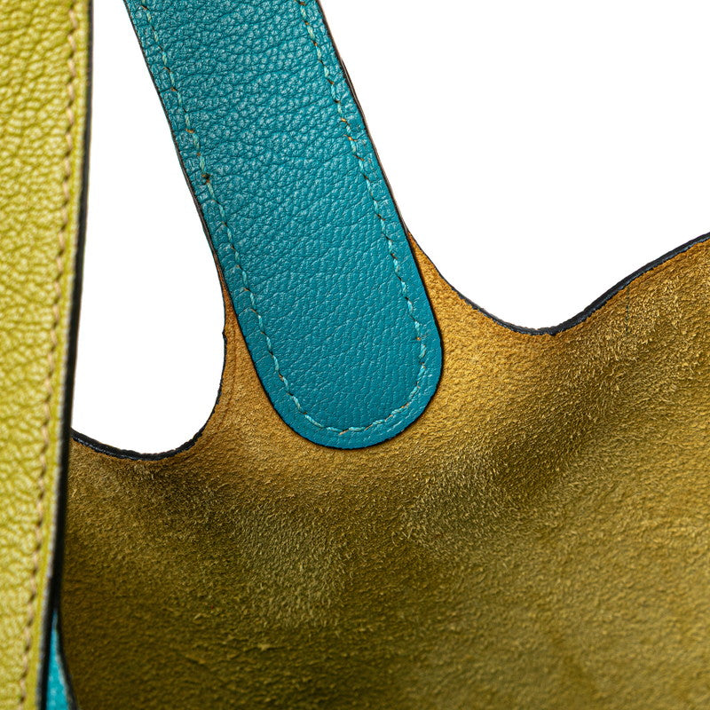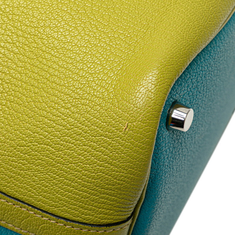 エルメス ピコタンPM バイカラー ハンドバッグ アニスグリーン ターコイズ シェーブル レディース HERMES 【中古】