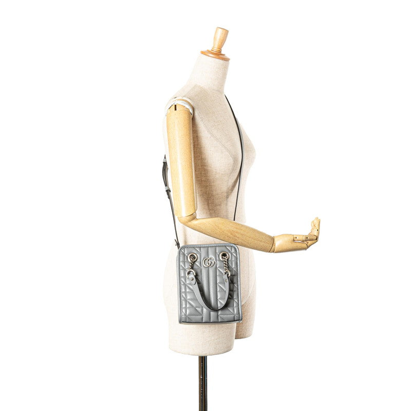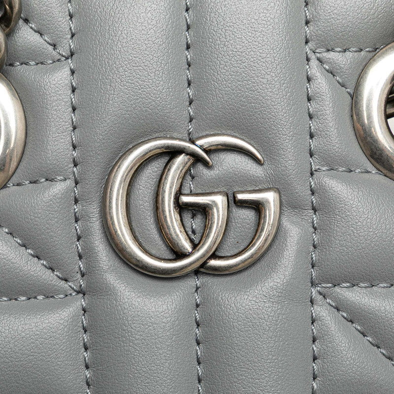 グッチ GGマーモント キルティング ミニ ハンドバッグ ショルダーバッグ 2WAY 696123 グレー レザー レディース GUCCI 【中古】