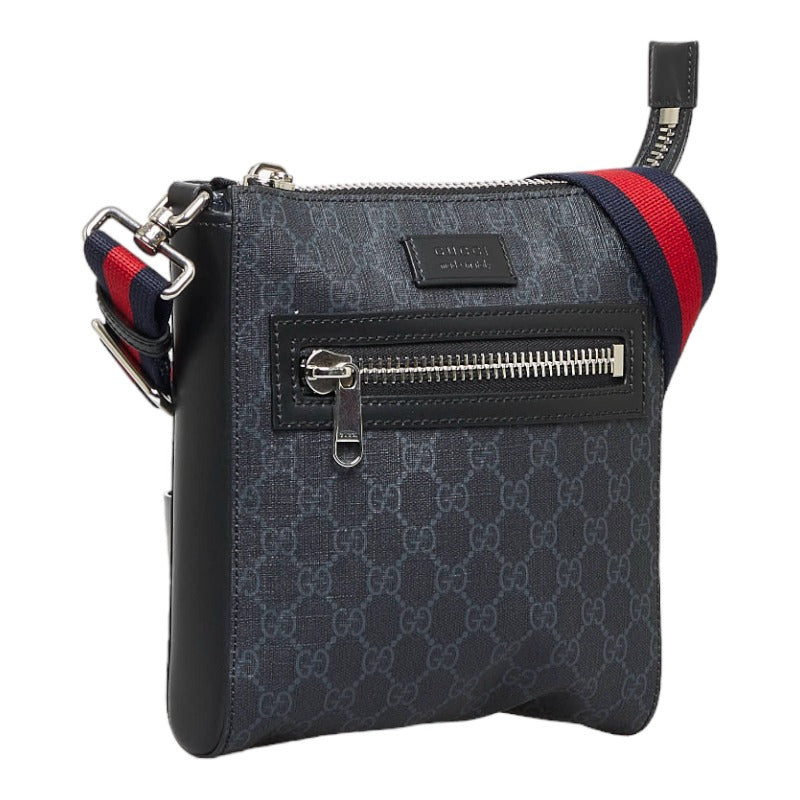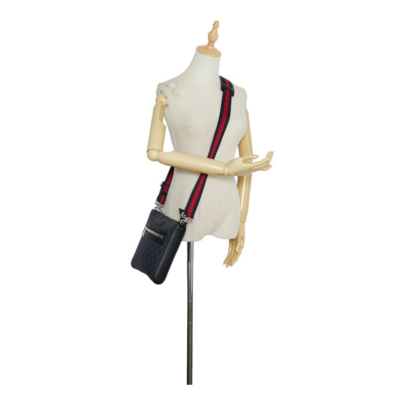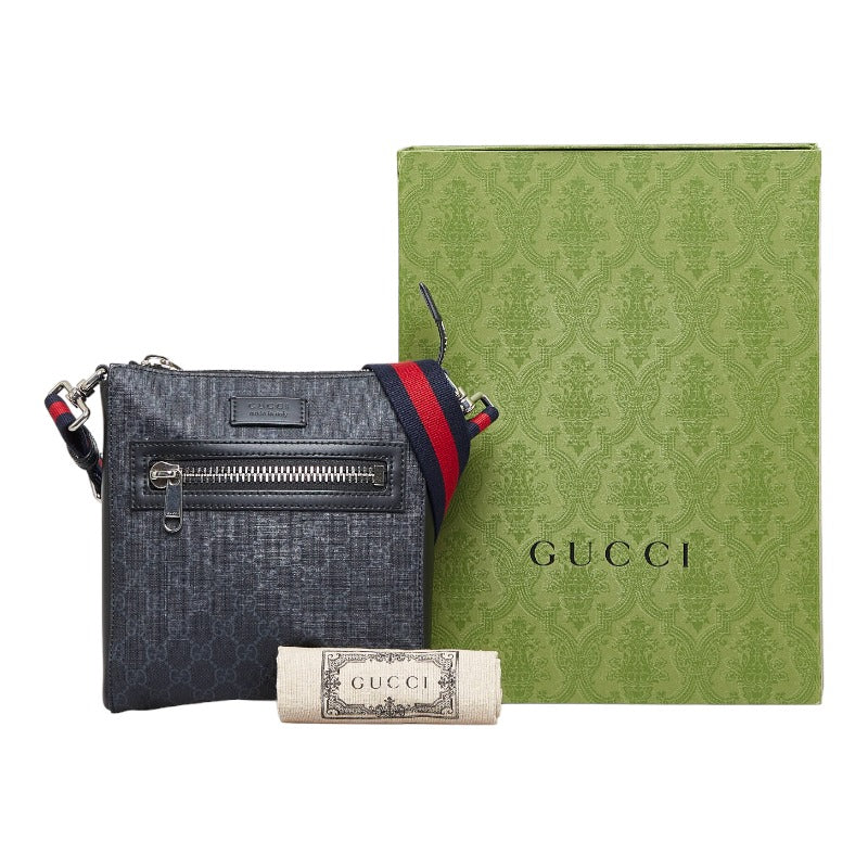 グッチ GGスプリーム スモールメッセンジャー 斜め掛け ショルダーバッグ 523599 ブラック グレー PVC レザー レディース GUCCI 【中古】
