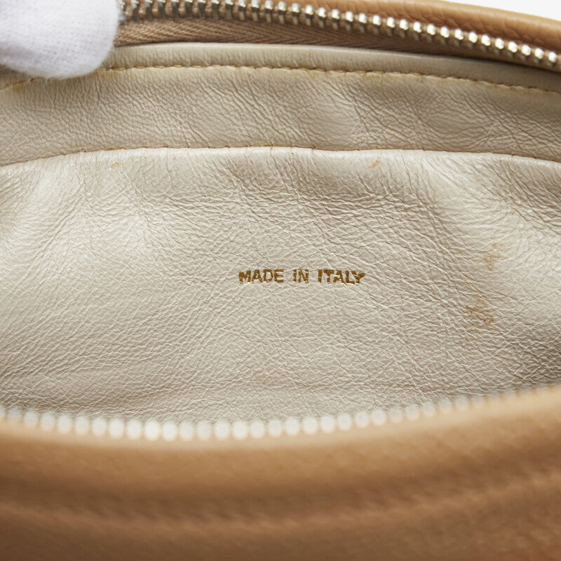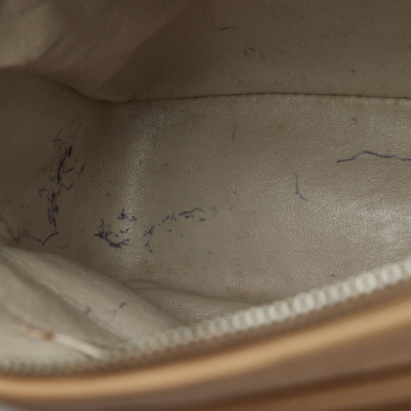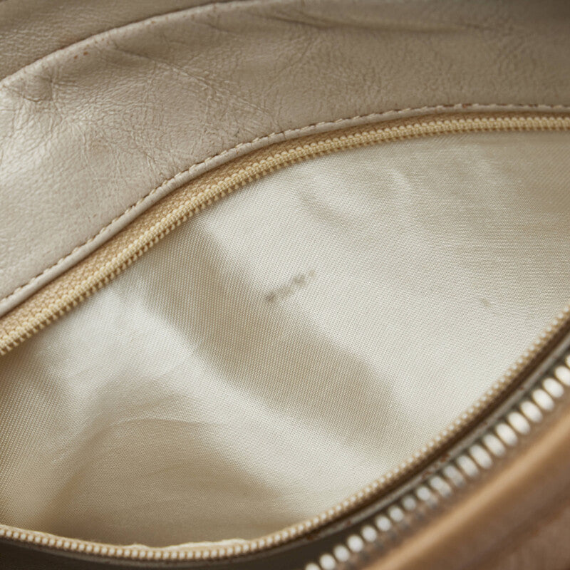 外側⇒若干の型崩れ、オープンポケット内側にスレ・シミ・汚れ・ペン跡 ショルダー⇒ヨレ・スレ・生地浮き 金具⇒小キズ 開閉口⇒型崩れ 内側⇒メインに汚れ・シミ・複数個所にペン跡、オープンポケット開閉口にひび割れ・内側にスレ・シミ・底面にノリ染み、ファスナーポケット内側に大きなシミ・黄ばみ、開閉口付近にスレ・はがれ・黄ばみ |
