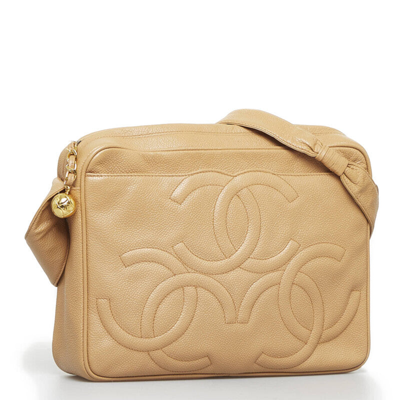 シャネル トリプルココマーク ココボール 斜め掛け ショルダーバッグ ベージュ キャビアスキン レディース CHANEL 【中古】