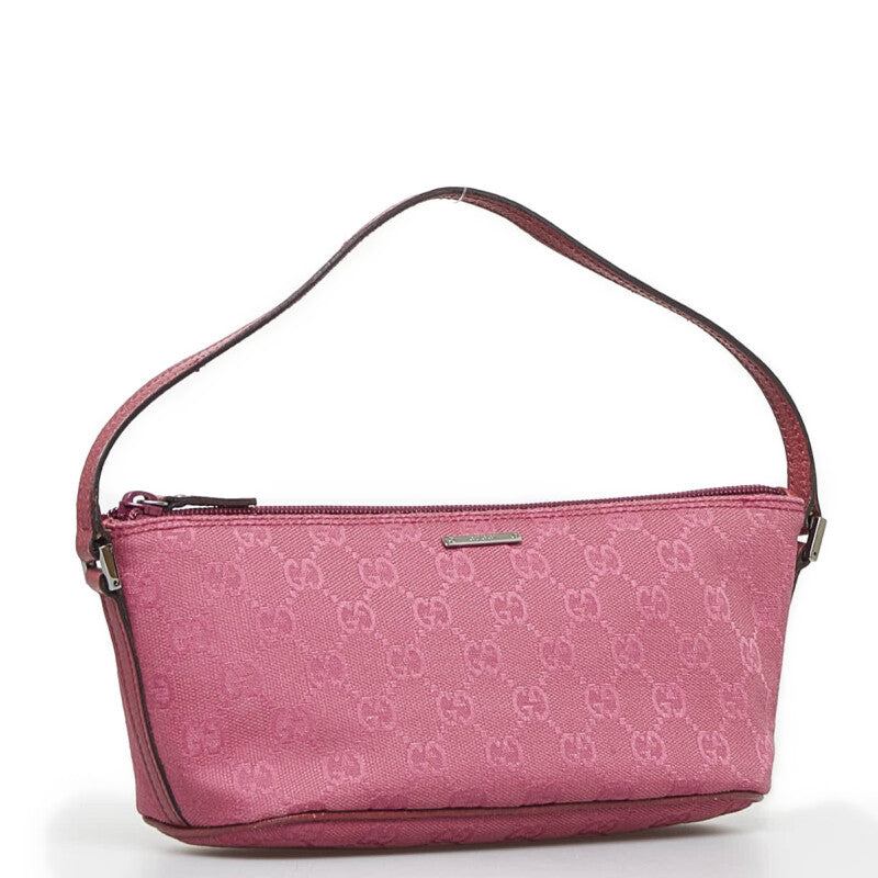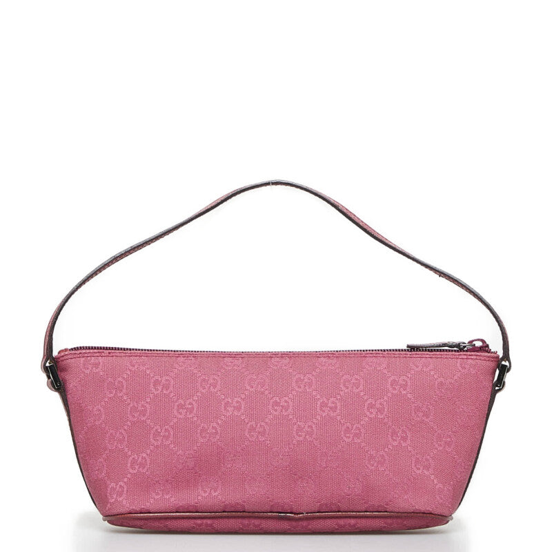 グッチ GGキャンバス アクセサリーポーチ 07198 ピンク キャンバス レザー レディース GUCCI 【中古】