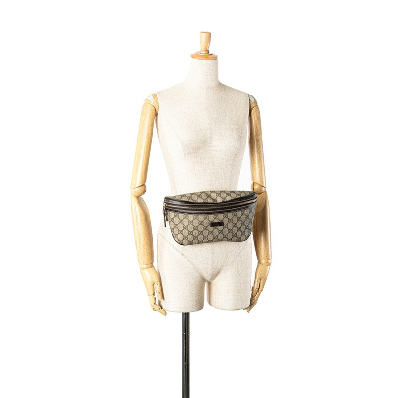 グッチ GGスプリーム ボディバッグ ウエストバッグ 233269 ベージュ ブラウン PVC レザー レディース GUCCI 【中古】