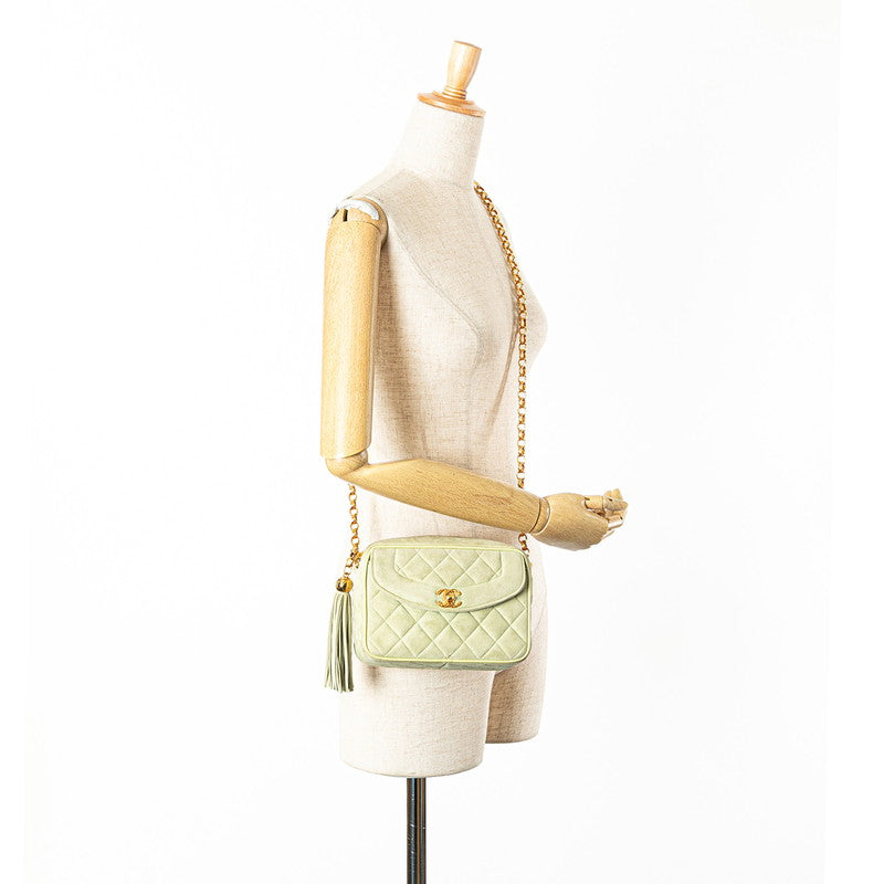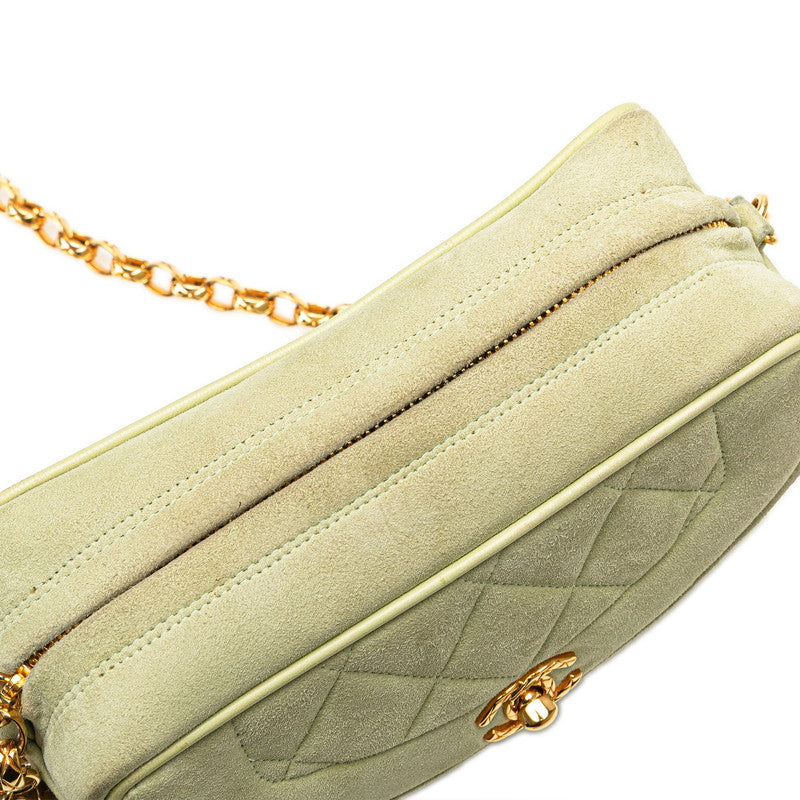 シャネル ココマーク ダイアナ タッセル チェーン ショルダーバッグ ライムグリーン ヌバック レディース CHANEL 【中古】