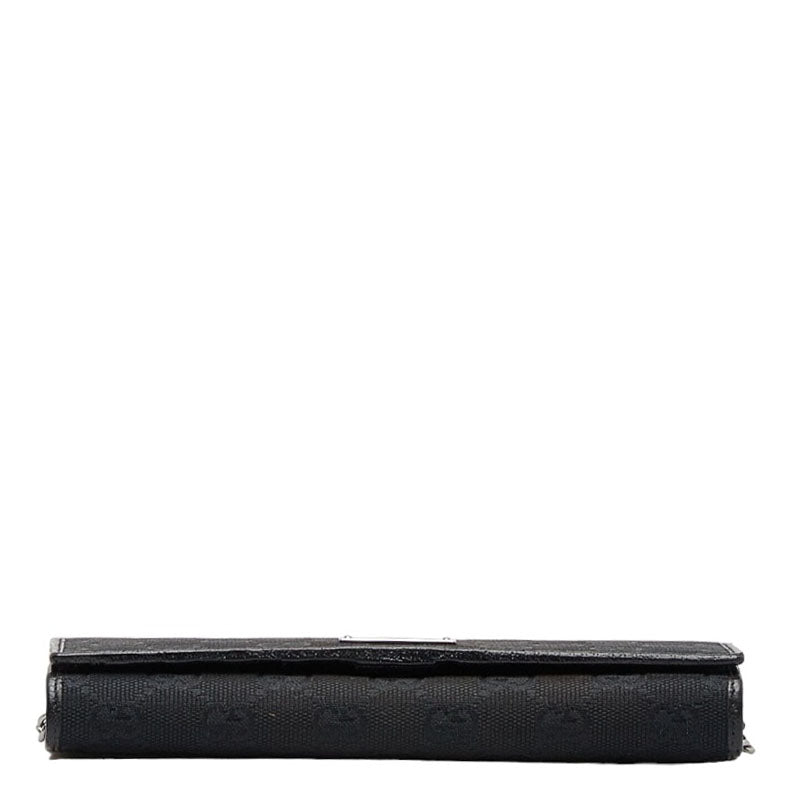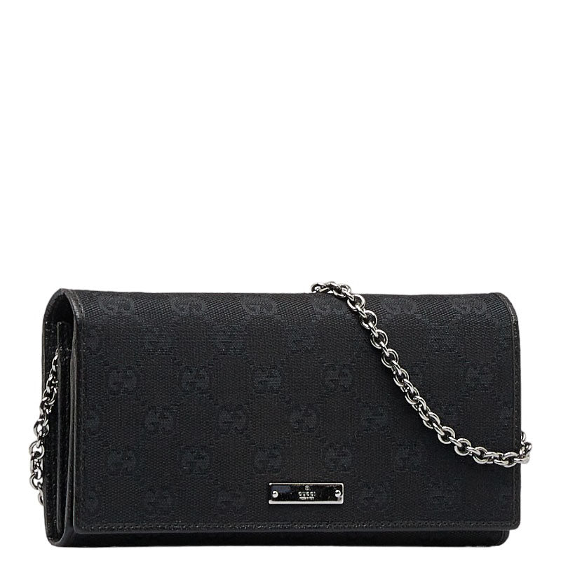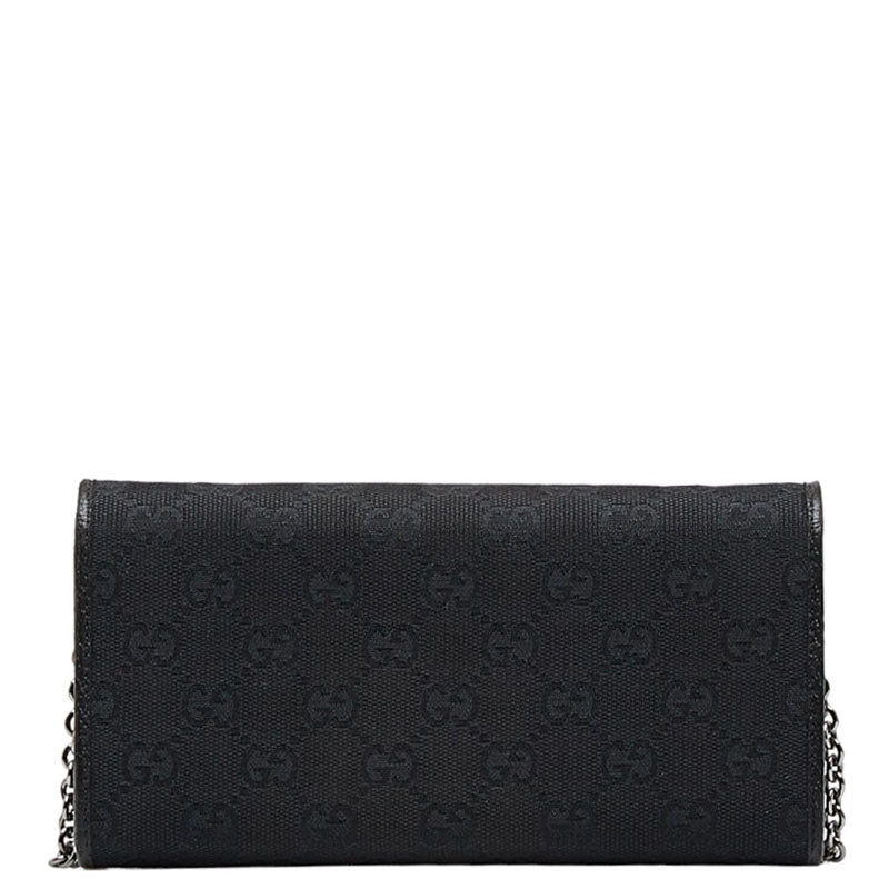 グッチ GGキャンバス チェーンウォレット 長財布 2WAY 170426 ブラック キャンバス レザー レディース GUCCI 【中古】
