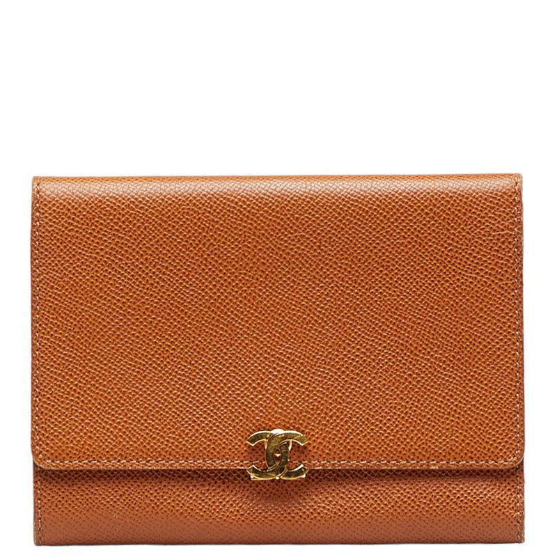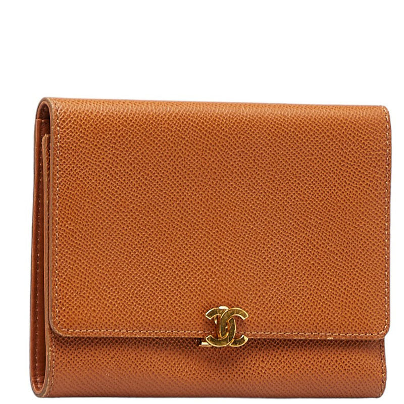 シャネル ココマーク ココロック ゴールド金具 三つ折り財布 ブラウン レザー レディース CHANEL 【中古】