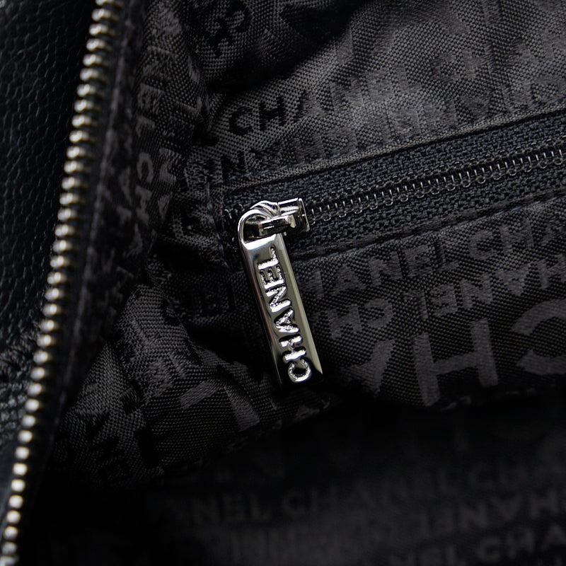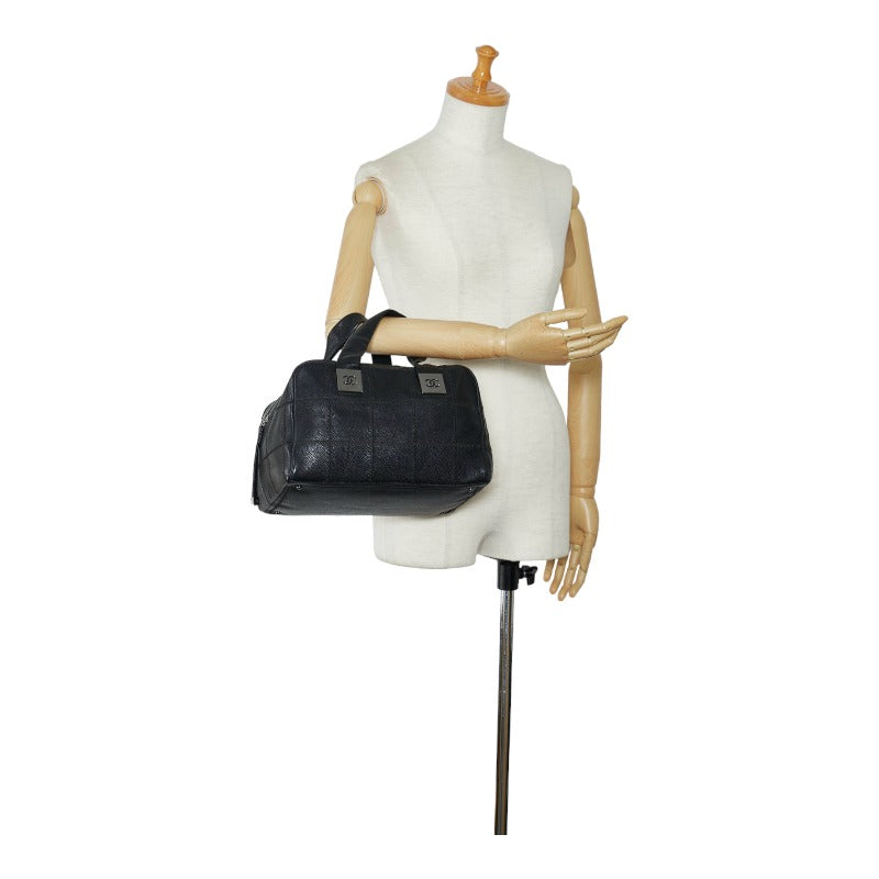 シャネル チョコバー ココマーク ハンドバッグ ミニボストンバッグ ブラック キャビアスキン レディース CHANEL 【中古】
