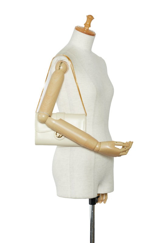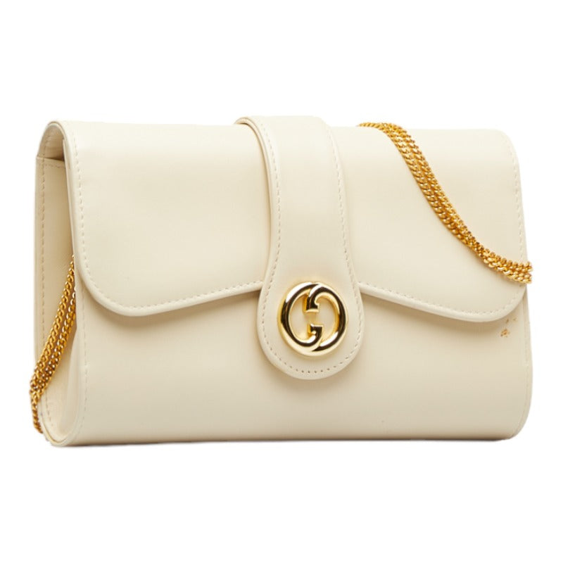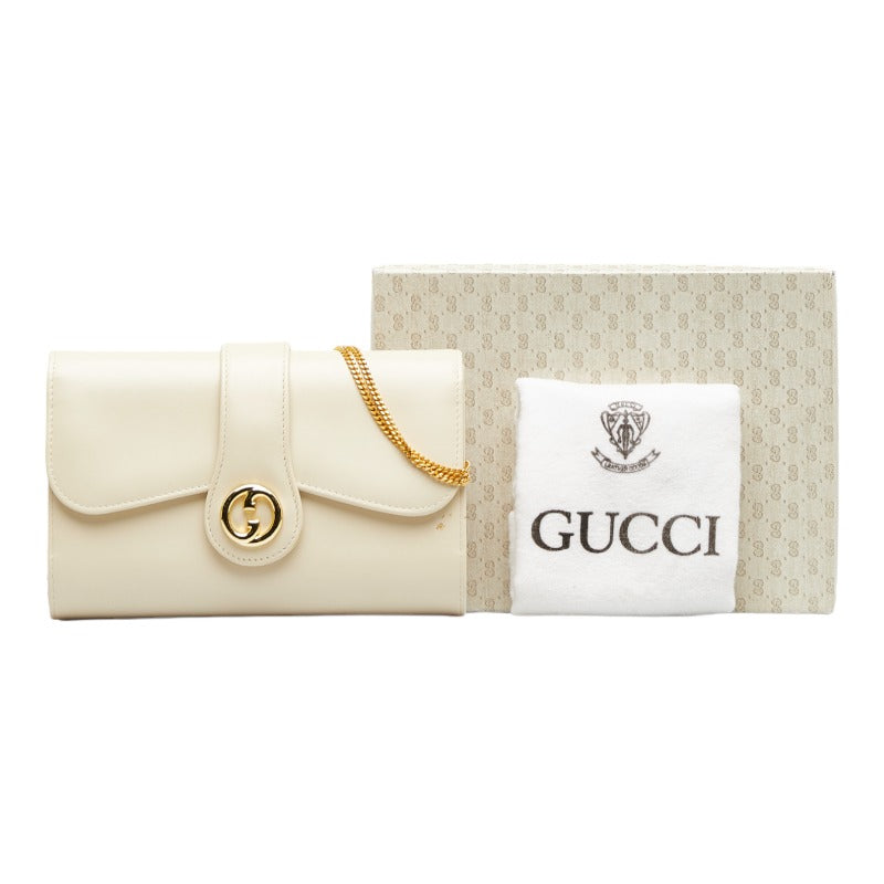グッチ インターロッキングG チェーン ショルダーバッグ ホワイト レザー レディース GUCCI 【中古】