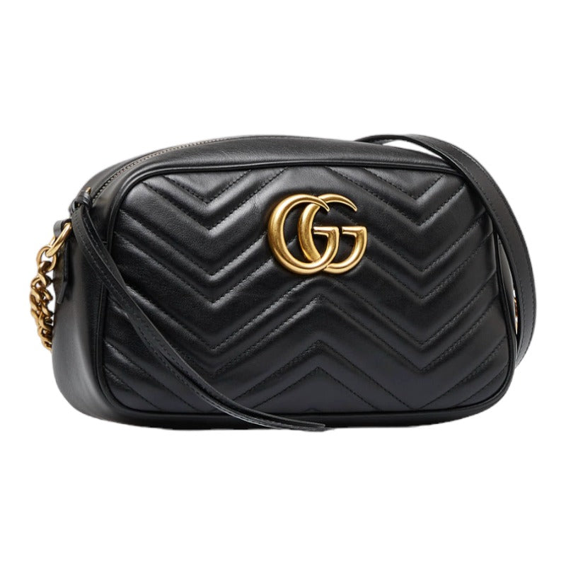 グッチ GGマーモント 斜め掛け チェーン ショルダーバッグ 447632 ブラック レザー レディース GUCCI 【中古】