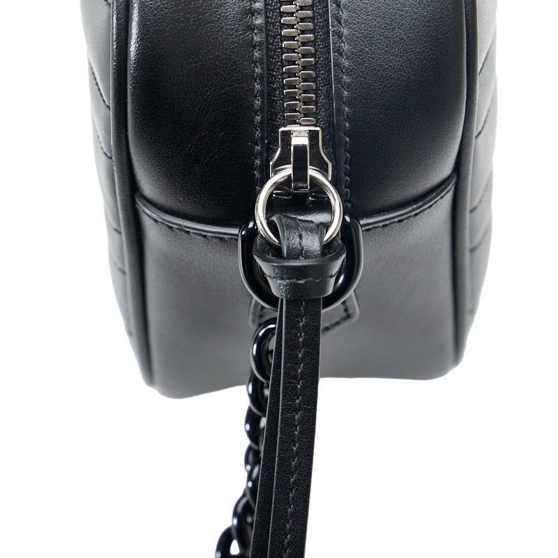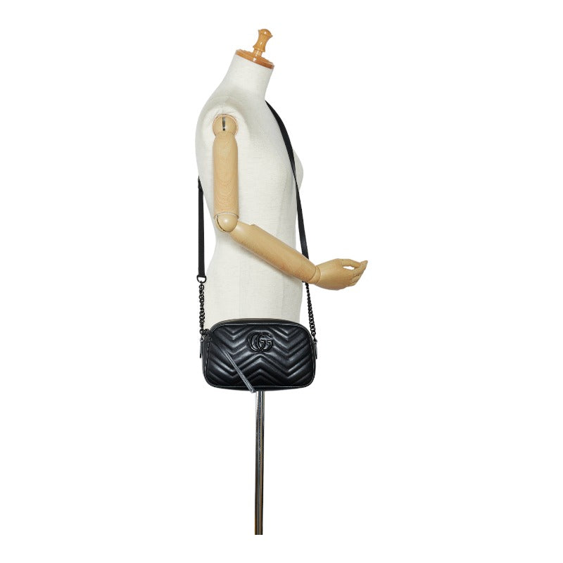 グッチ GGマーモント キルティング スモール 斜め掛け チェーン ショルダーバッグ 447632 ブラック レザー レディース GUCCI 【中古】