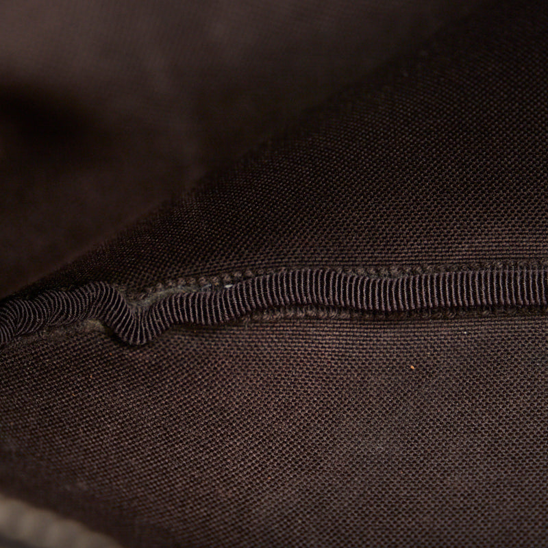 外側⇒若干の型崩れ ショルダー⇒若干のスレ・金具跡 金具⇒小キズ・クスミ 開閉口⇒若干の型崩れ・レザーにスレ・ヤケ、ファスナー持ち手にスレ・ヤケ・コバひび割れ 内側⇒メインにスレ・汚れ・目立つ薄いシミ・変色、開閉口付近にフチにスレ・毛羽立ち、ポケットにスレ・薄汚れ |