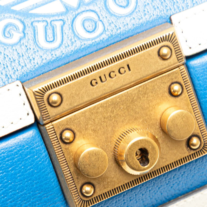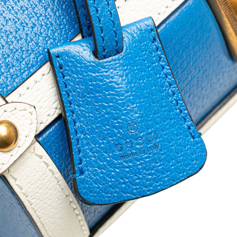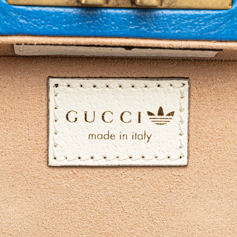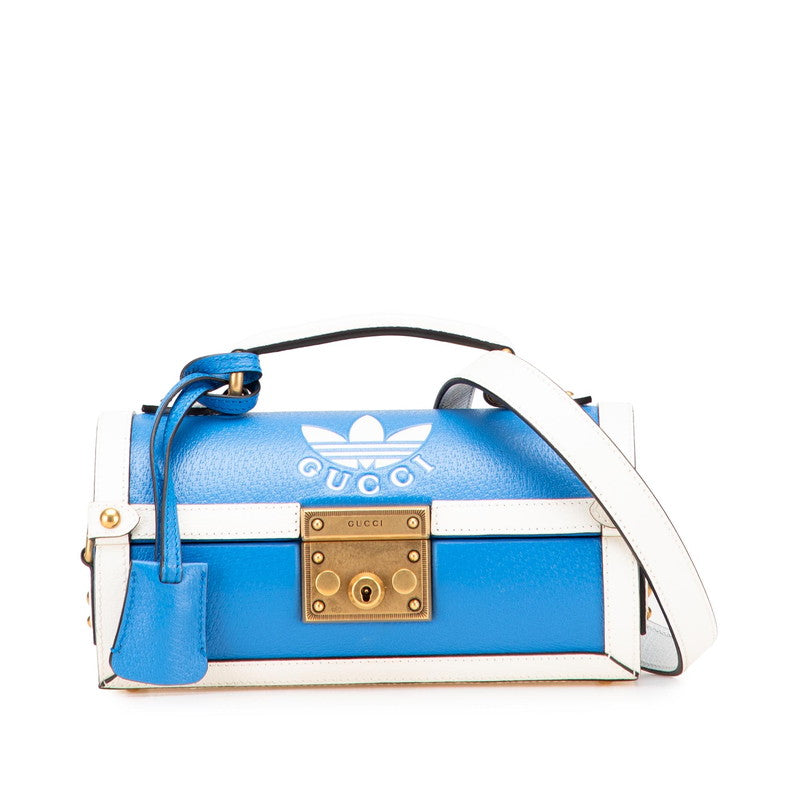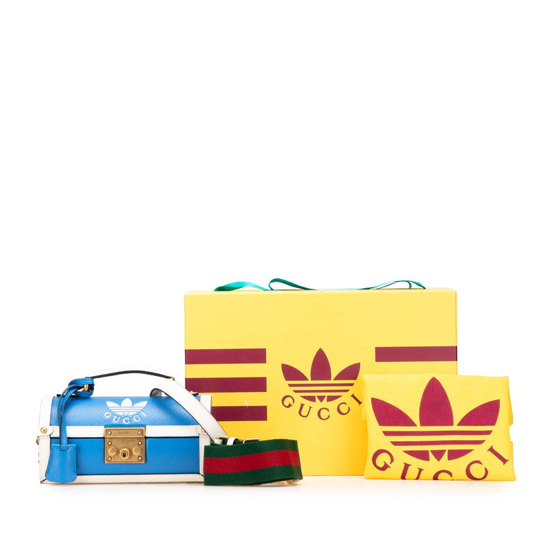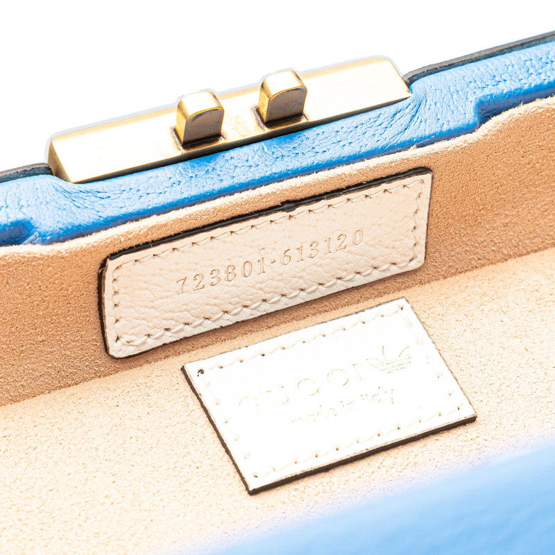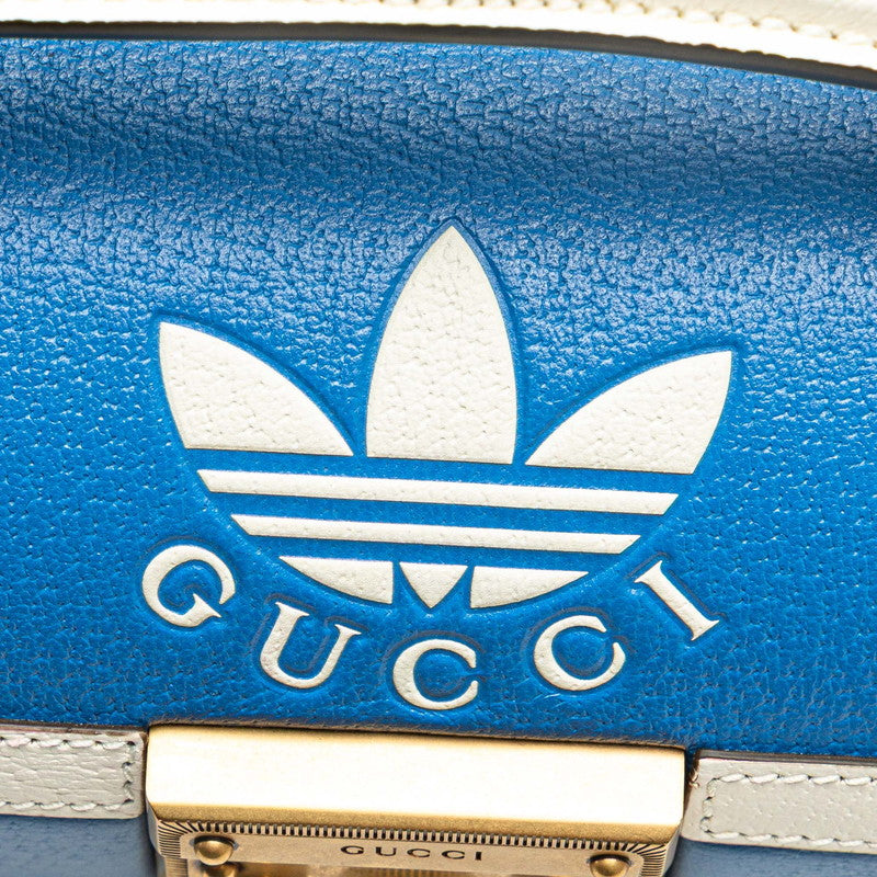 グッチ × アディダス adidas ゴルフボールケース ハンドバッグ ショルダーバッグ 2WAY 723801 ブルー ホワイト レザー レディース GUCCI 【中古】