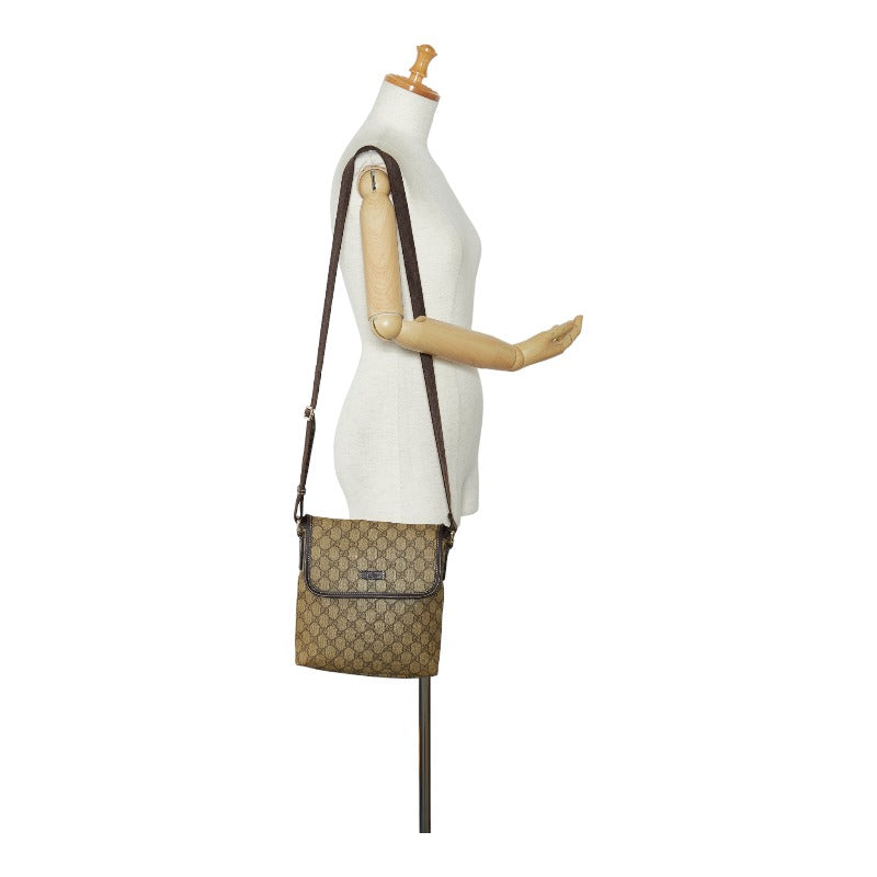 グッチ GGスプリーム 斜め掛け ショルダーバッグ 223666 ベージュ ブラウン PVC レザー レディース GUCCI 【中古】