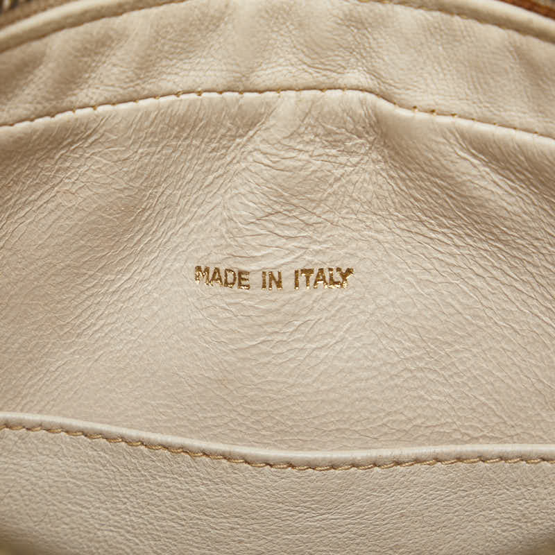 外側⇒型崩れ・全体的に黒ズミ・黄ばみ・多数のシミ・汚れ・シワ、ポケットに複数の汚れ・シミ・ペン跡 サイド⇒黒ズミ・黄ばみ・シミ・シワ 底面⇒黒ズミ・黄ばみ・シミ・シワ・目立つ角スレ・はがれ ショルダー⇒レザーに黒ズミ・スレ・汚れ 金具⇒キズ・変色・メッキはがれ 開閉口⇒型崩れ・黒ズミ・黄ばみ・シミ・汚れ、タッセルにヨレ・スレ・黒ズミ・汚れ・ノリ染み 内側⇒メインにスレ・薄汚れ・シミ・汚れ・シワ・はがれ、ポケットにペン跡・ノリ染み におい⇒保管臭 |