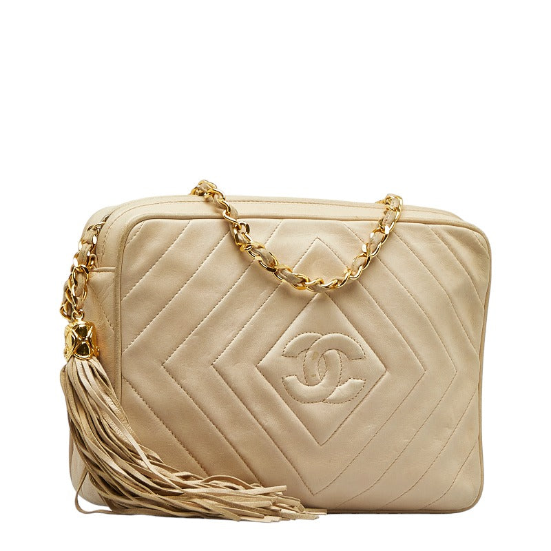 シャネル ココマーク タッセル フリンジ チェーン ショルダーバッグ ベージュ ラムスキン レディース CHANEL 【中古】