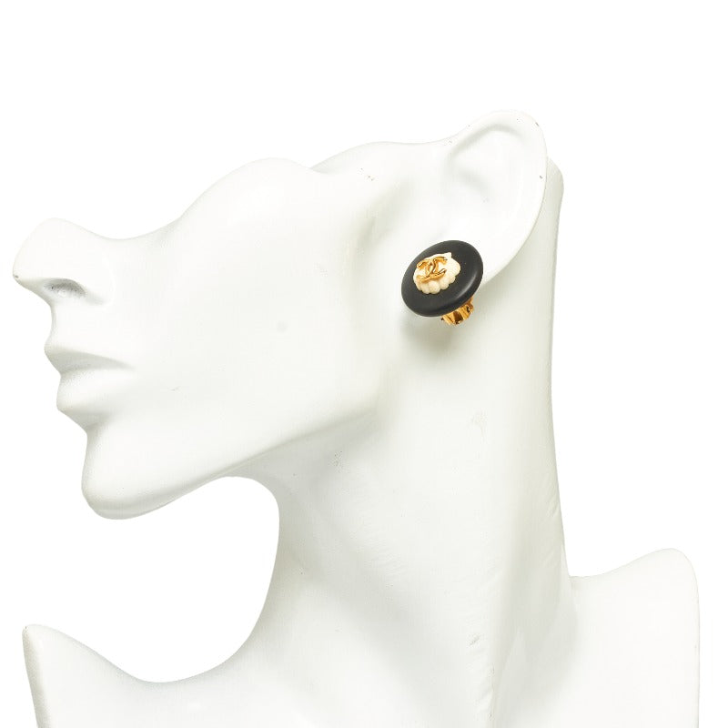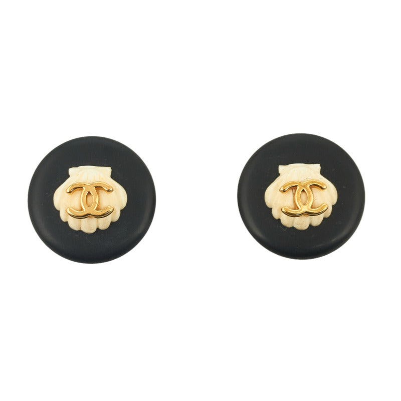 シャネル ココマーク シェルモチーフ イヤリング ブラック ゴールド メッキ プラスチック レディース CHANEL 【中古】