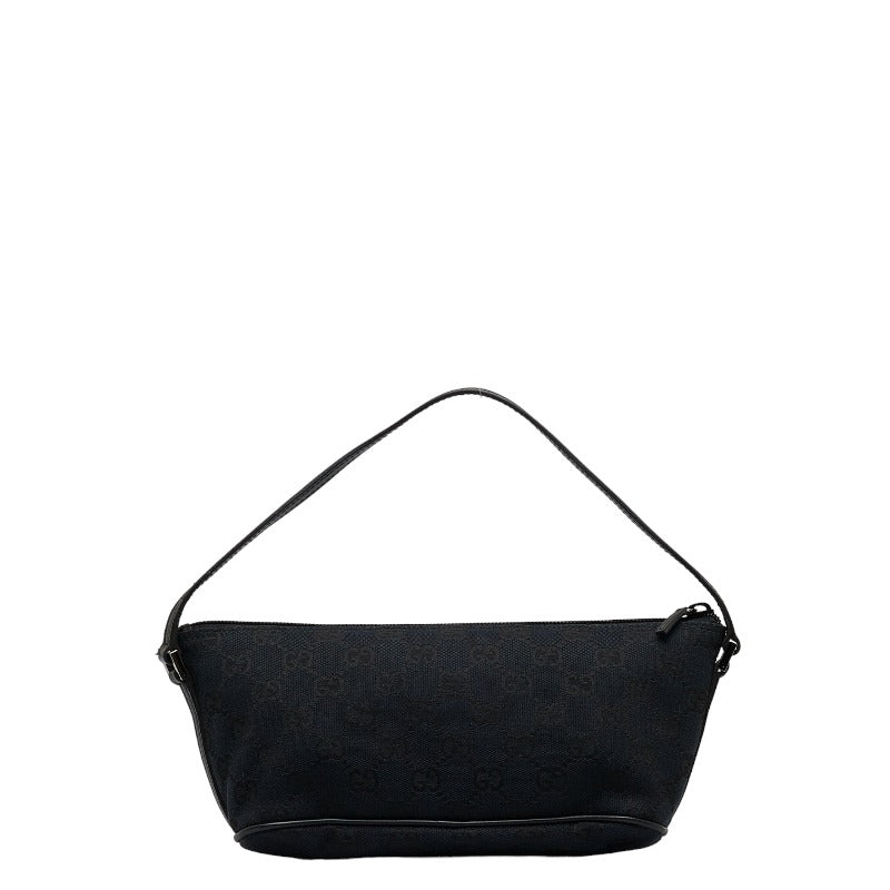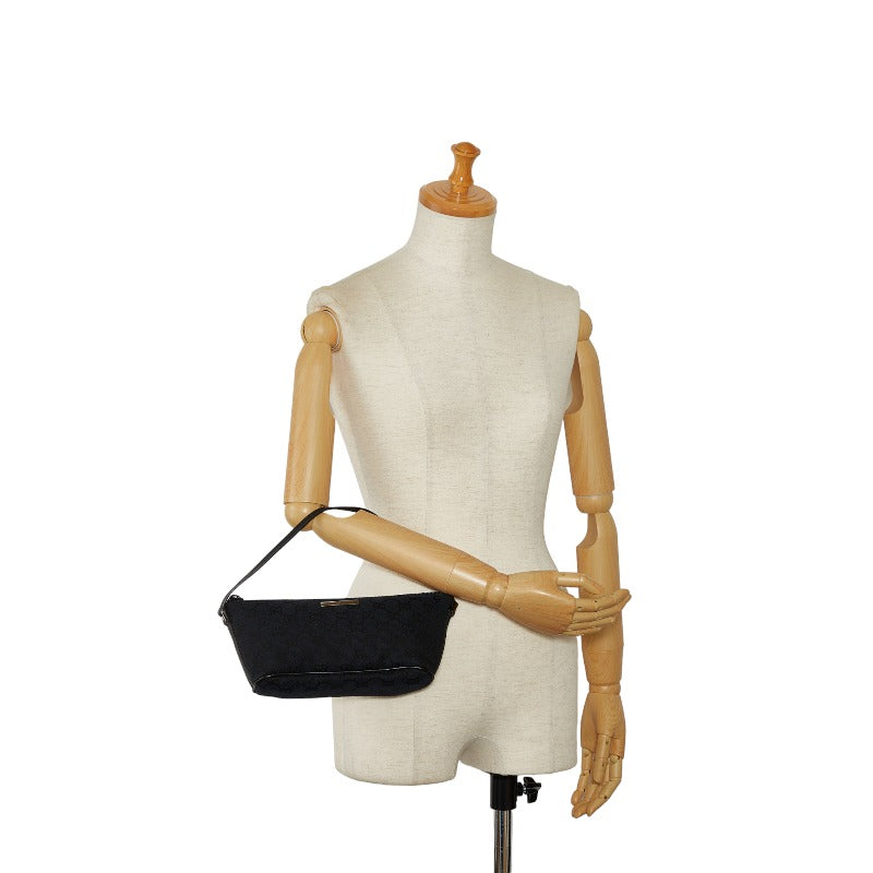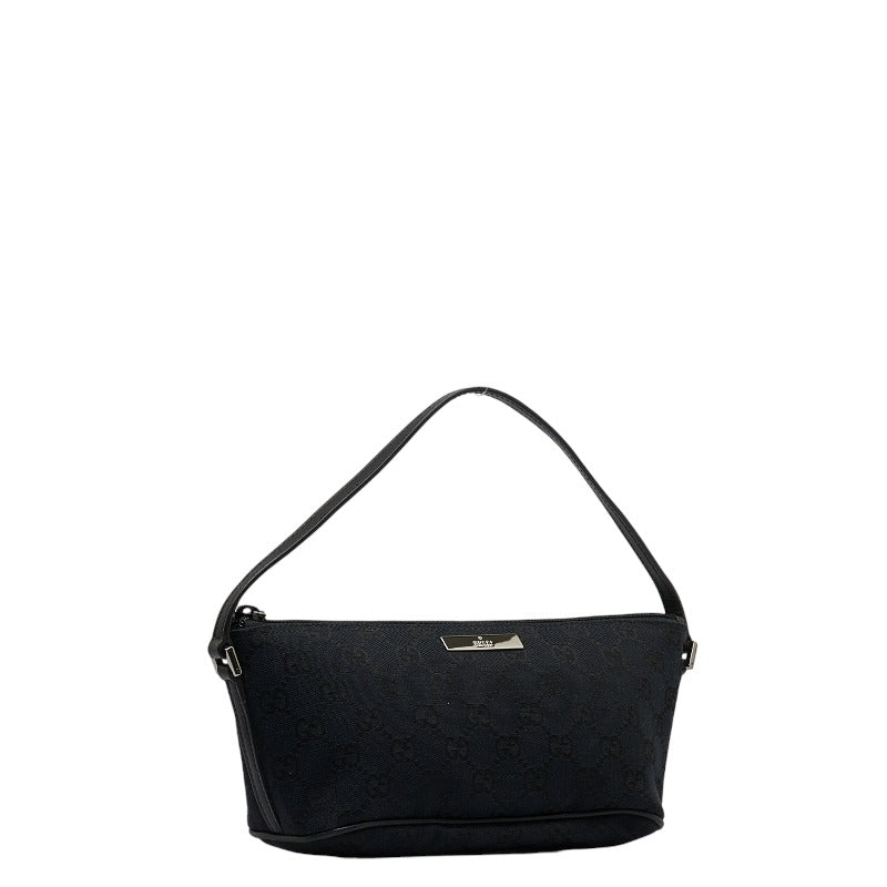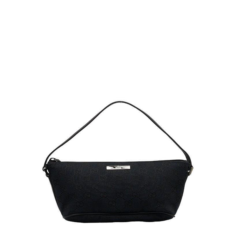 グッチ GGキャンバス ロゴプレート アクセサリーポーチ ハンドバッグ 0391103 ブラック キャンバス レザー レディース GUCCI 【中古】