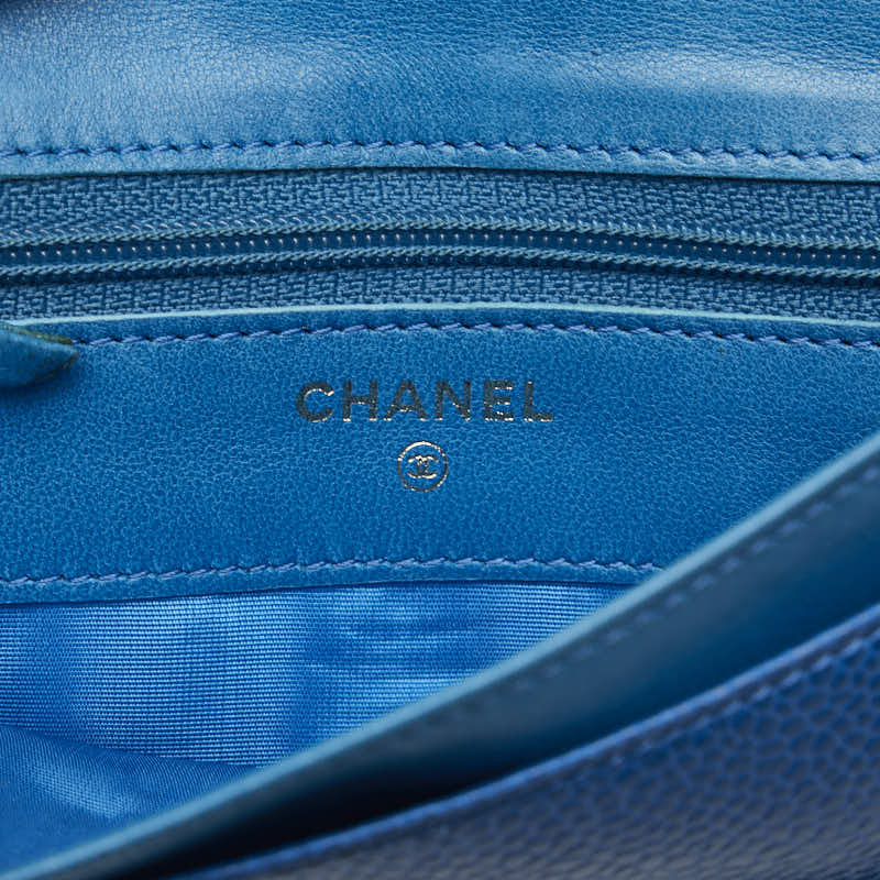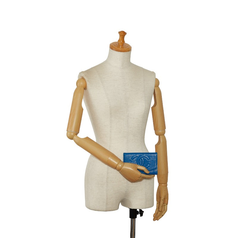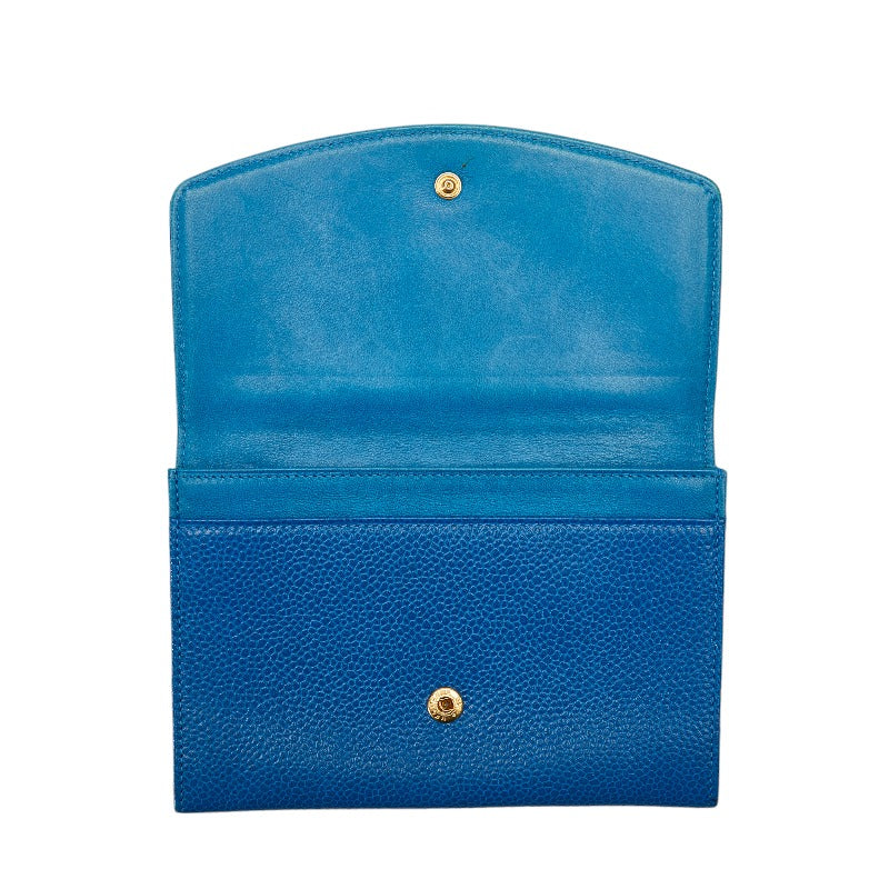 シャネル ココマーク 二つ折り財布 ブルー キャビアスキン レディース CHANEL 【中古】