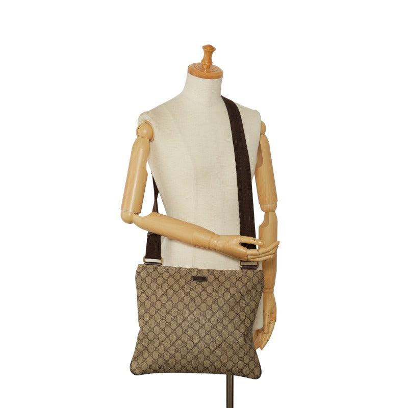 グッチ GGスプリーム 斜め掛け ショルダーバッグ 201446 ベージュ ブラウン PVC レザー レディース GUCCI 【中古】