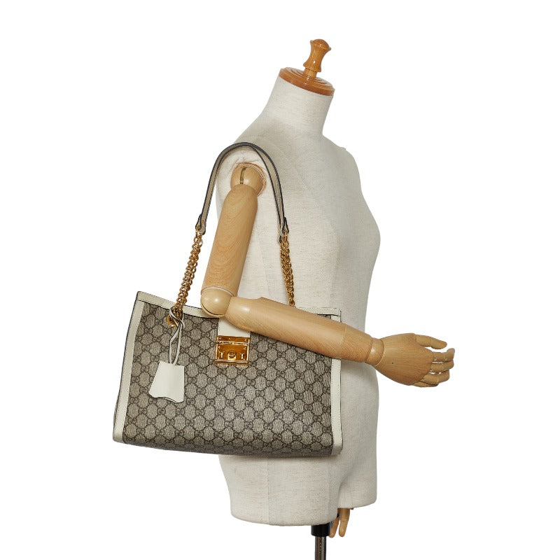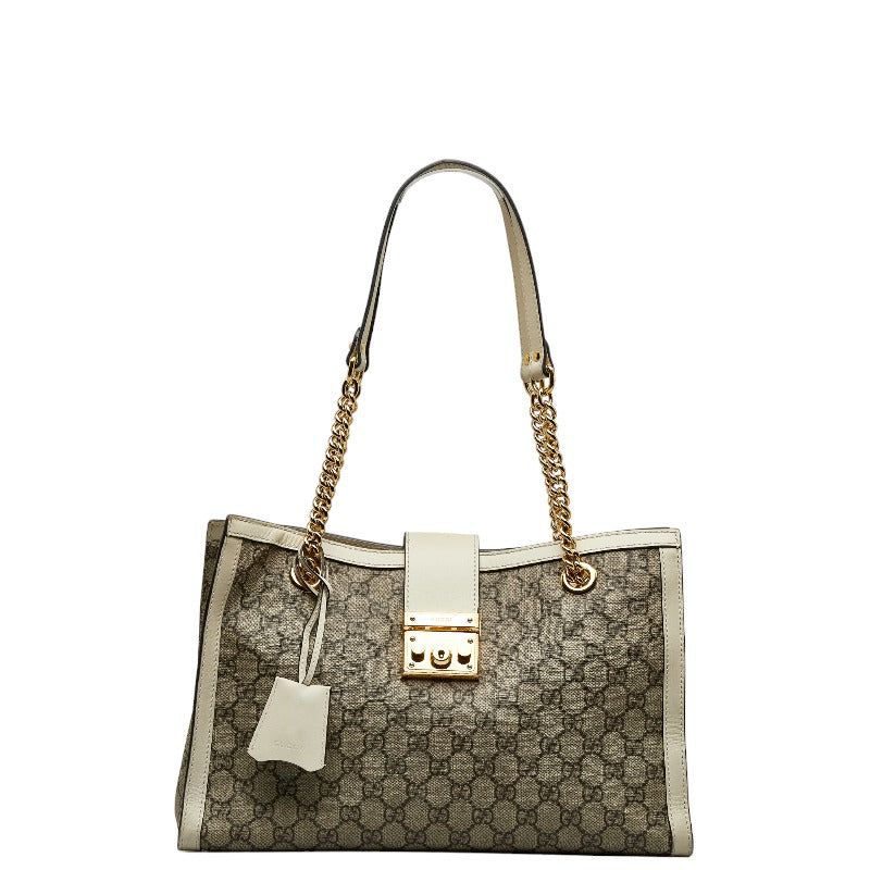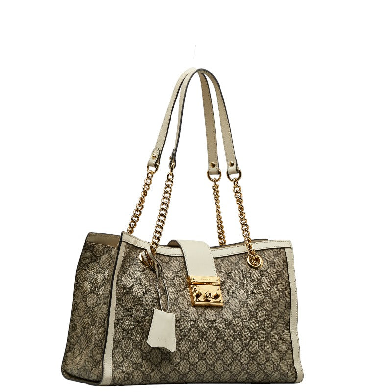 グッチ GGスプリーム パドロック ゴールド金具 チェーン ショルダーバッグ トートバッグ 479197 ベージュ アイボリー PVC レザー レディース GUCCI 【中古】