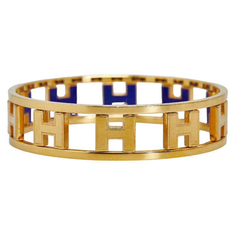 エルメス ロンドアッシュ Hロゴ リバーシブル バングル ブレスレット ゴールド ブルー メッキ レディース HERMES 【中古】
