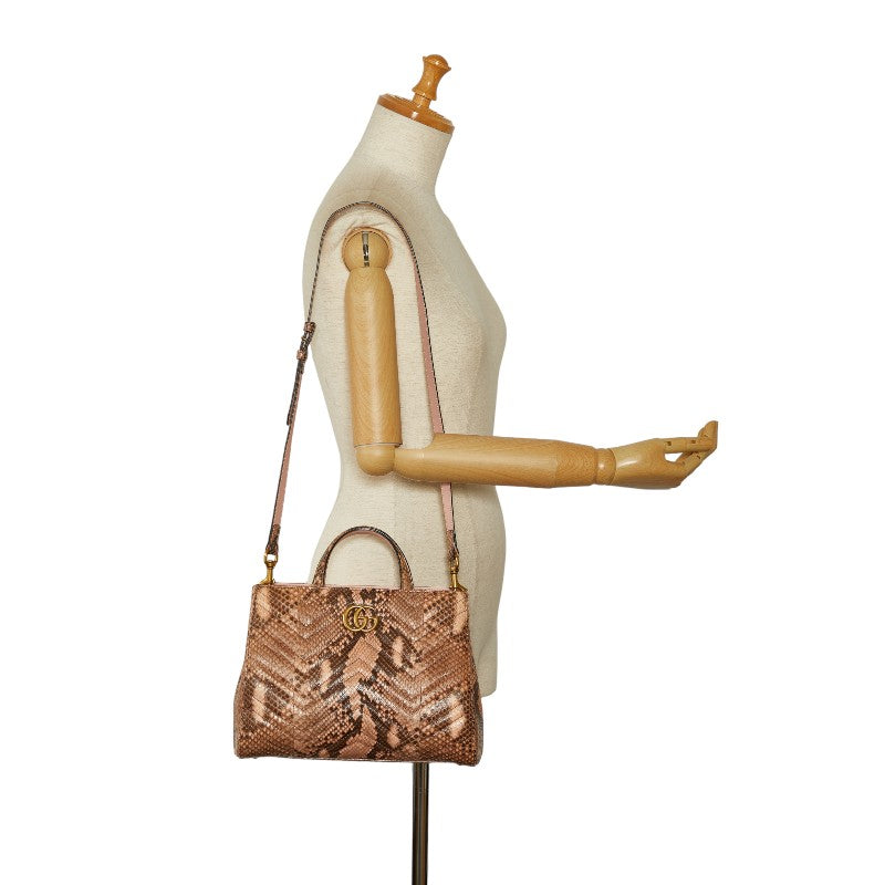 グッチ GGマーモント ハンドバッグ ショルダーバッグ2WAY 448054 ピンク パイソン レザー レディース GUCCI 【中古】