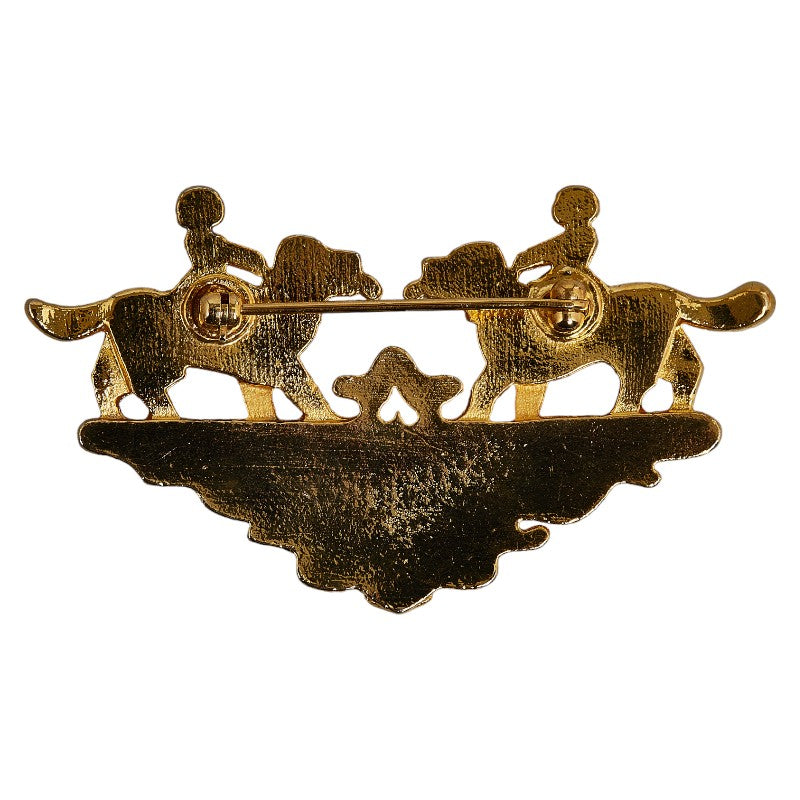 エルメス 七宝焼 少年 少女 犬 モチーフ ブローチ ゴールド レッド マルチカラー メッキ レディース HERMES 【中古】