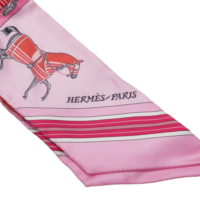 エルメス ツイリー 馬 モチーフ スカーフ ピンク オレンジ シルク レディース HERMES 【中古】